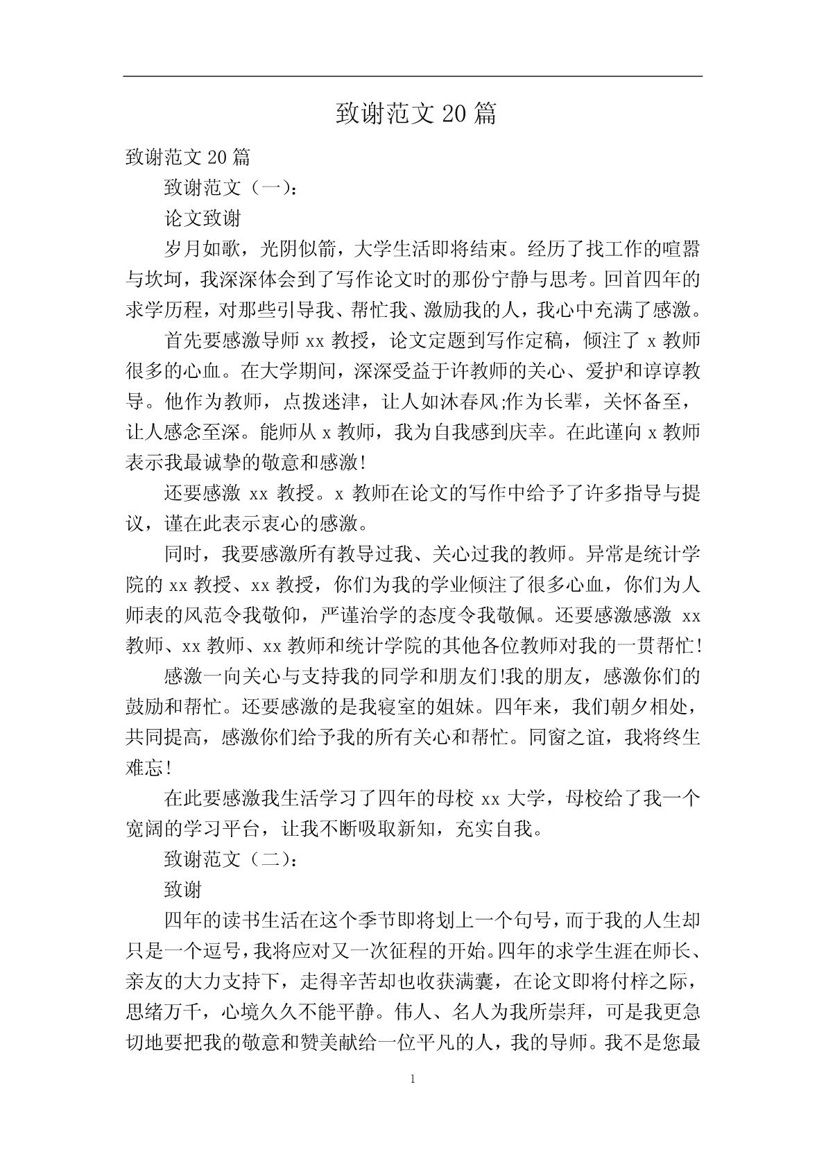 致谢范文20篇