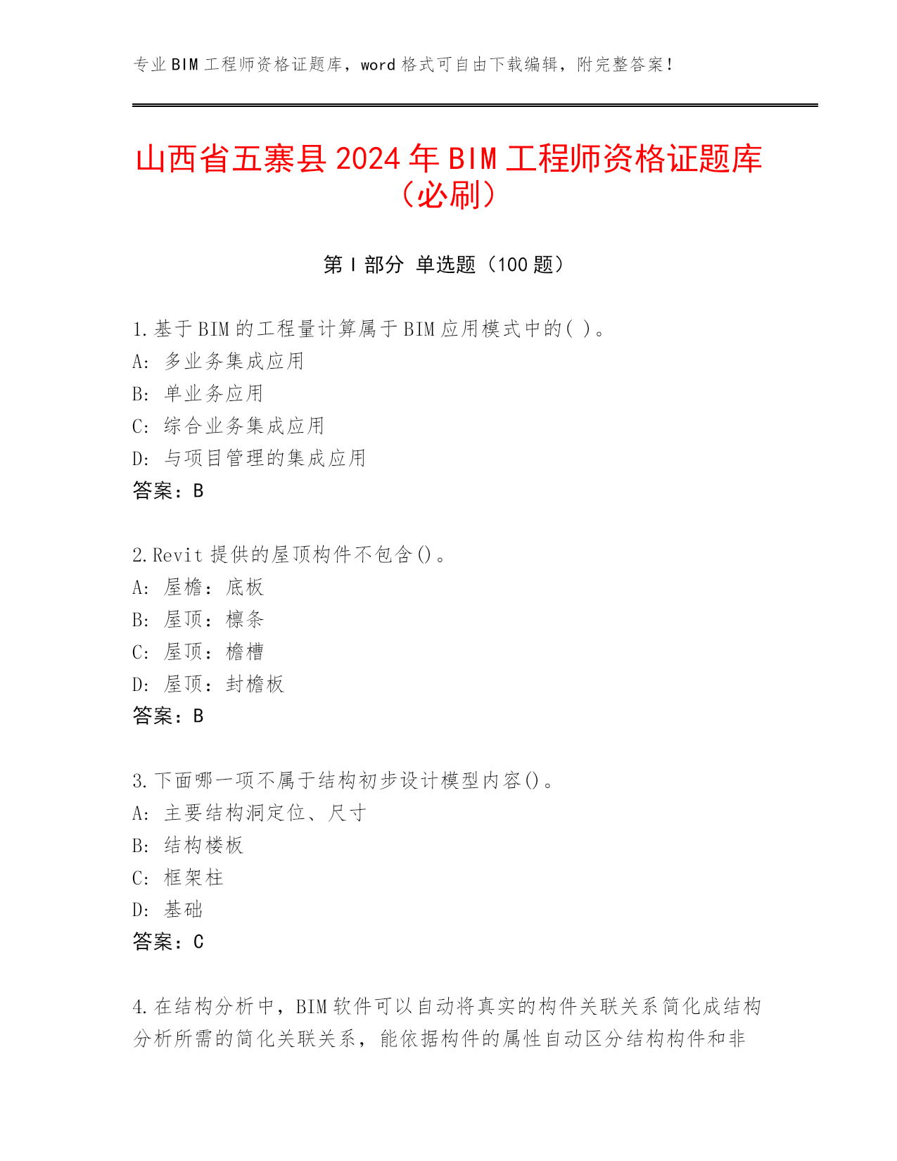 山西省五寨县2024年BIM工程师资格证题库(必刷)