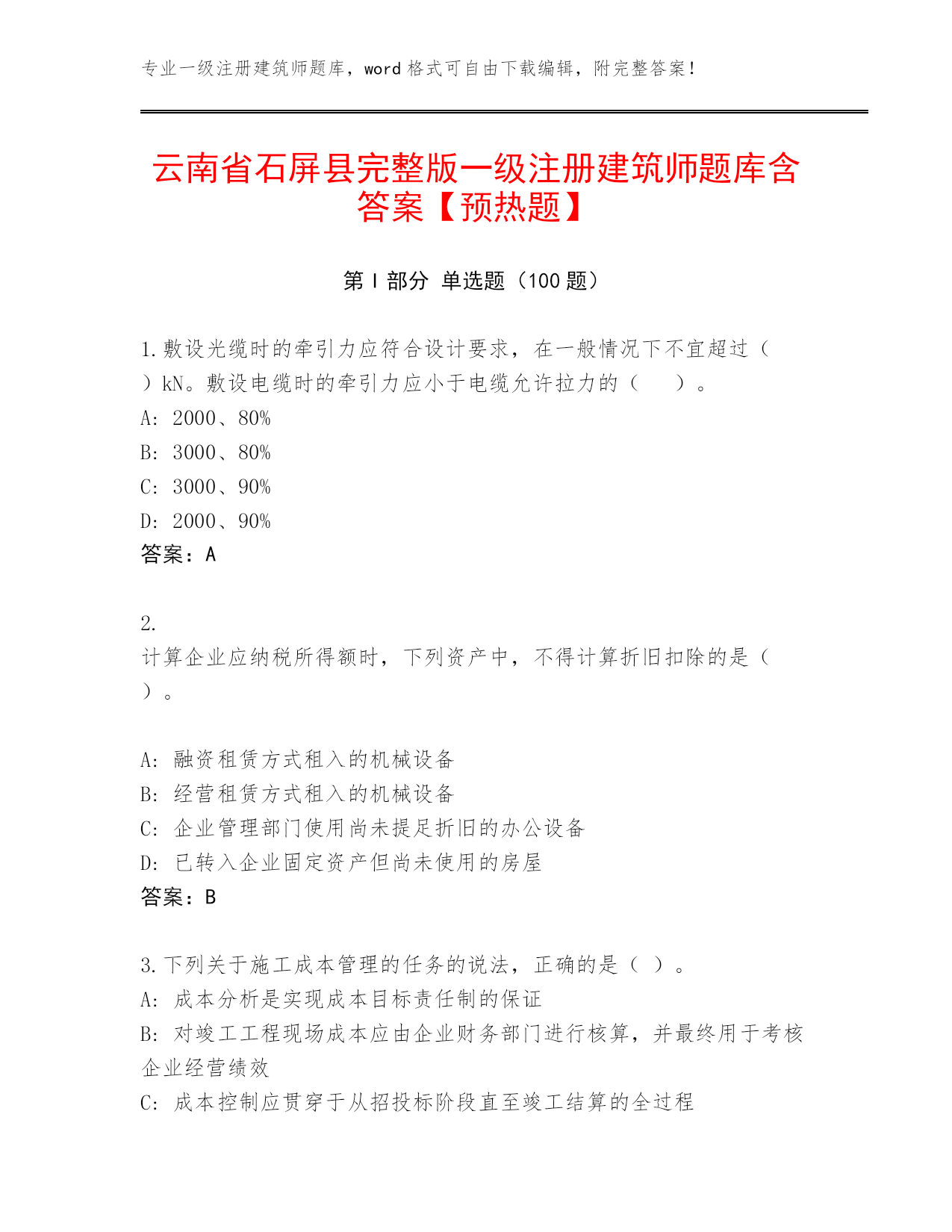 云南省石屏县完整版一级注册建筑师题库含答案【预热题】