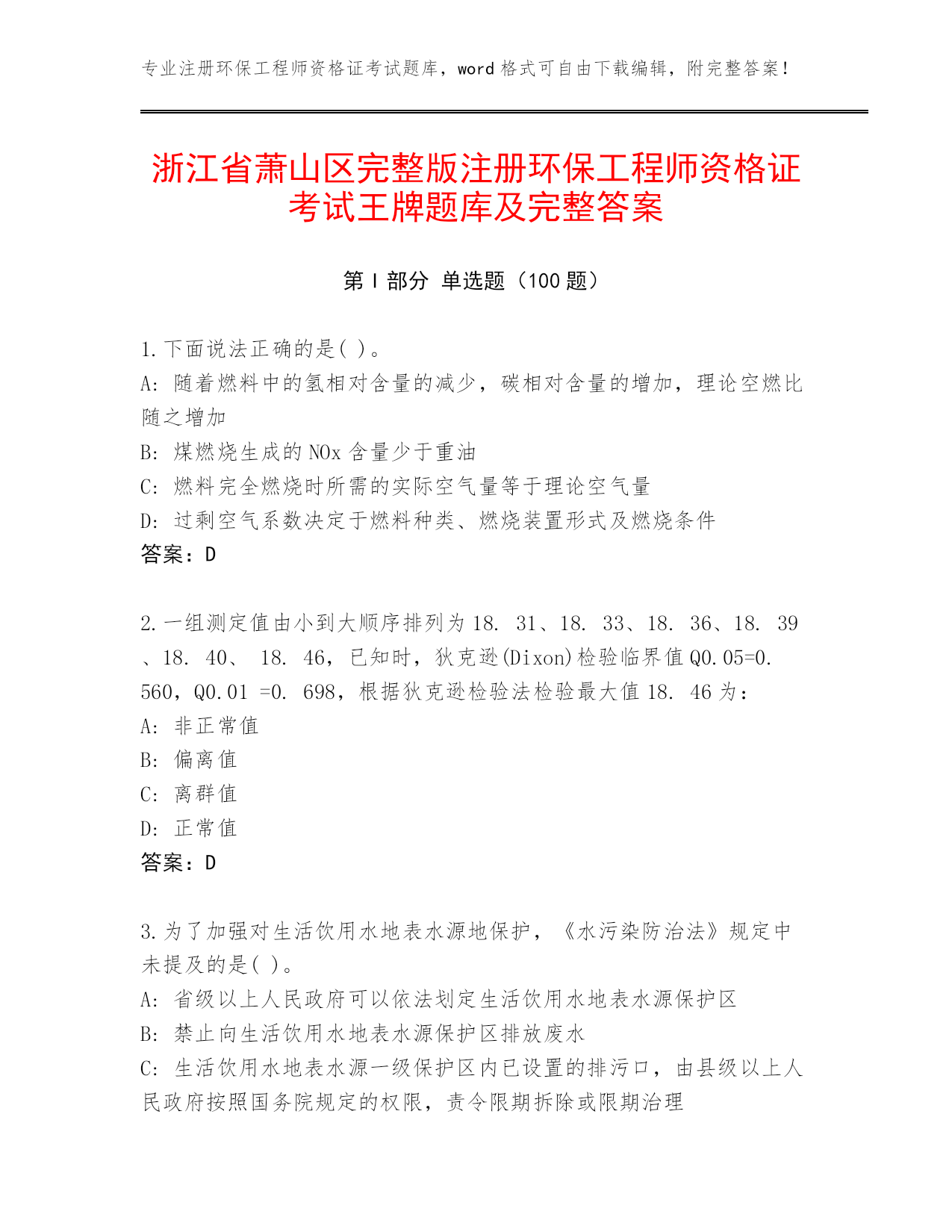浙江省萧山区完整版注册环保工程师资格证考试王牌题库及完整答案