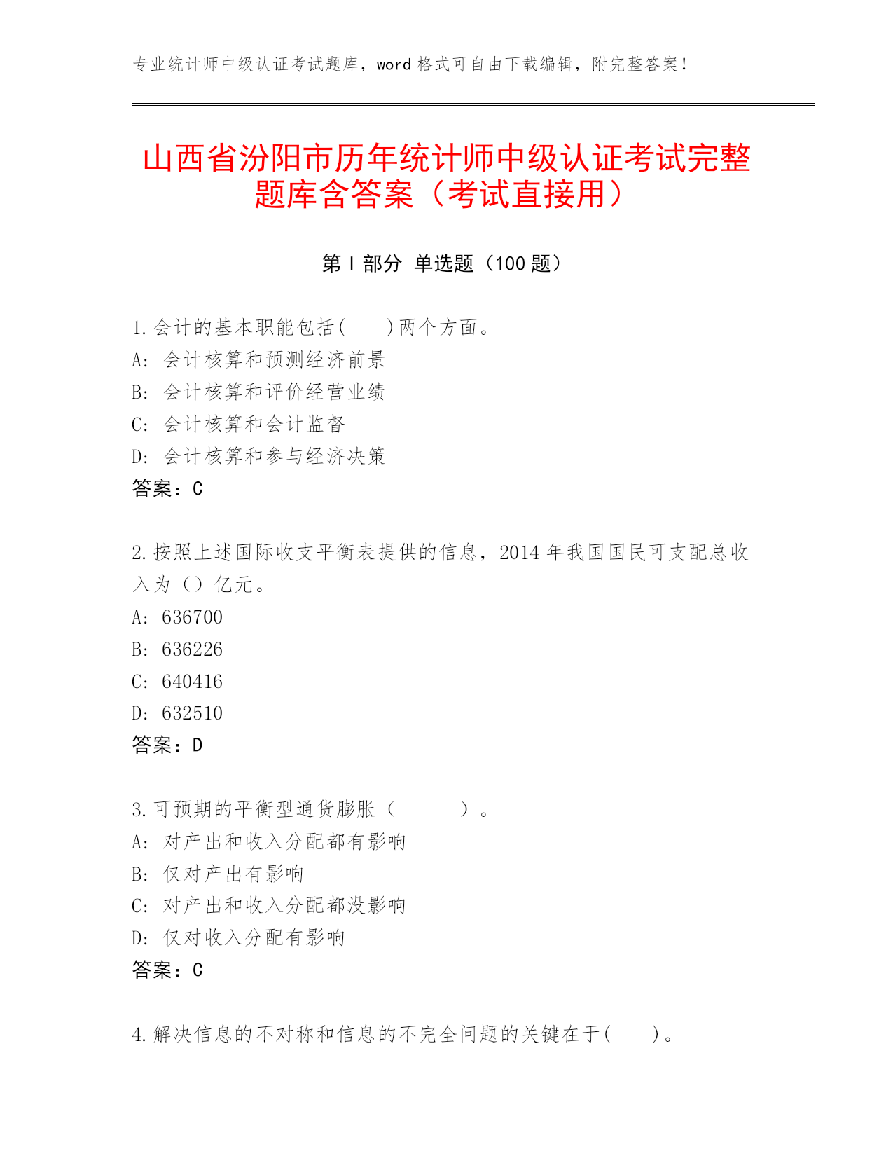 山西省汾阳市历年统计师中级认证考试完整题库含答案(考试直接用)