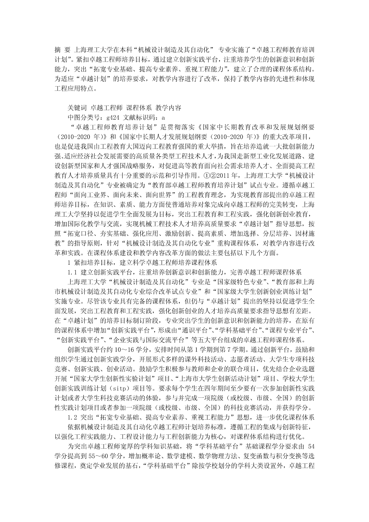“机械设计制造及其自动化”专业课程体系和教学内容改革实践