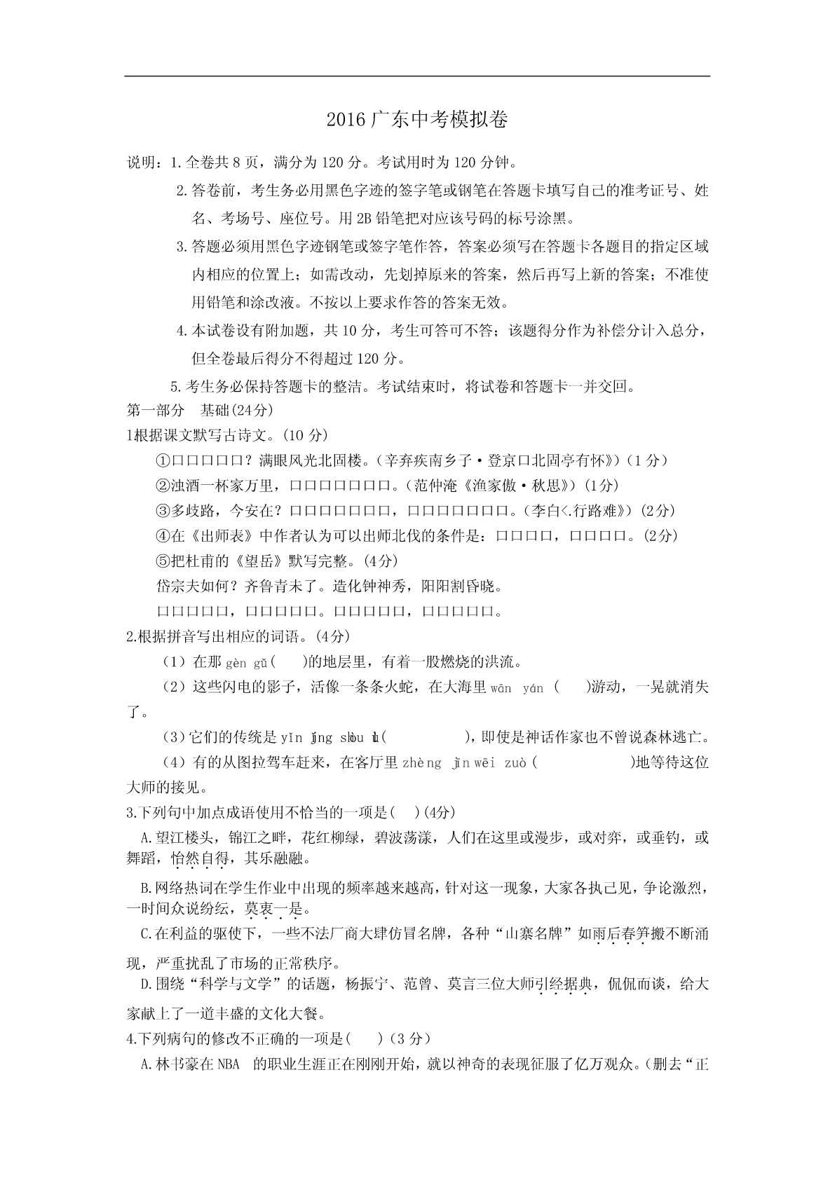 2016年湖北省鄂州市中考语文真题试卷及解析概要1讲解