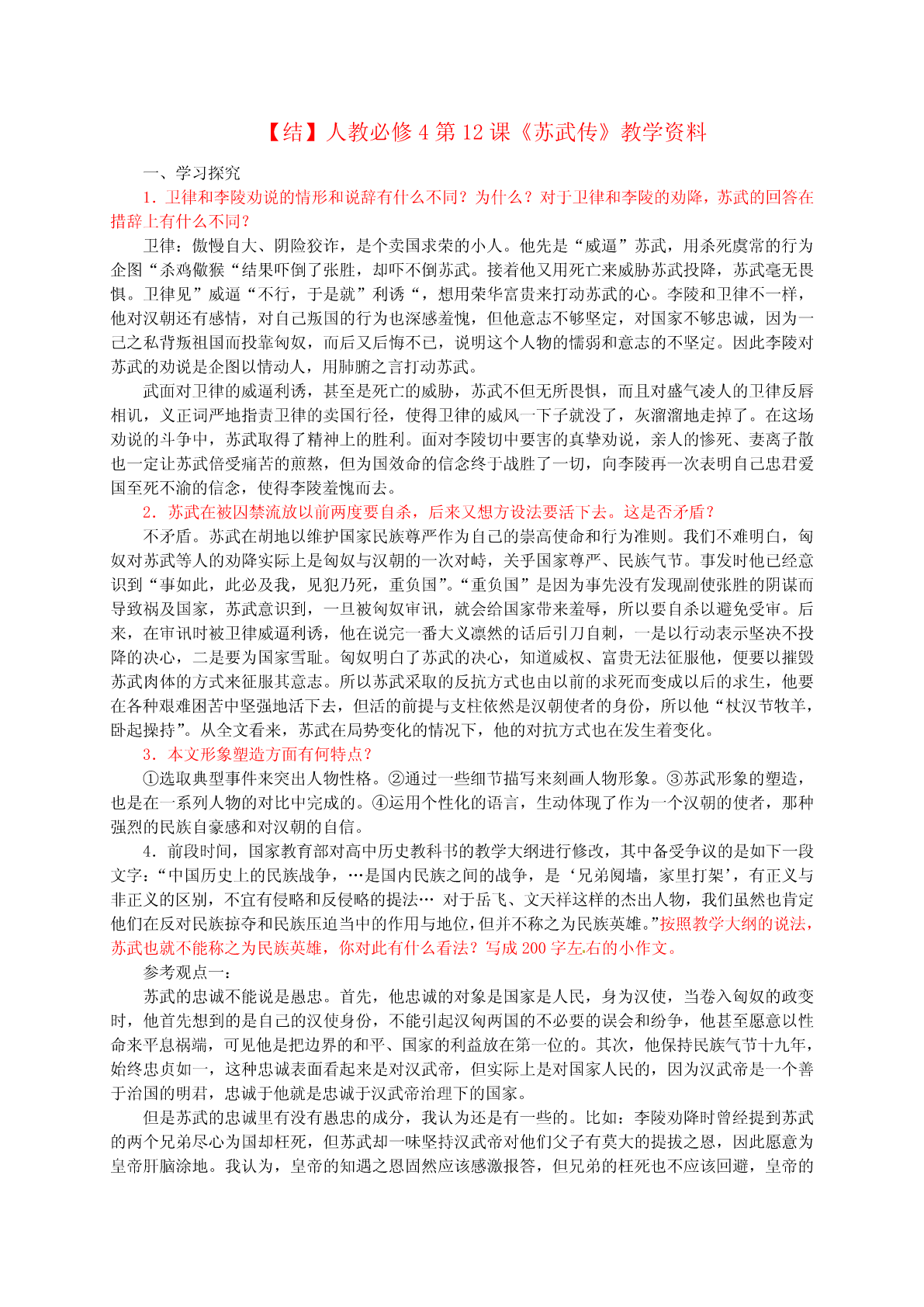 2015年高中语文 第12课《苏武传》教学资料(结)新人教版必修4讲解