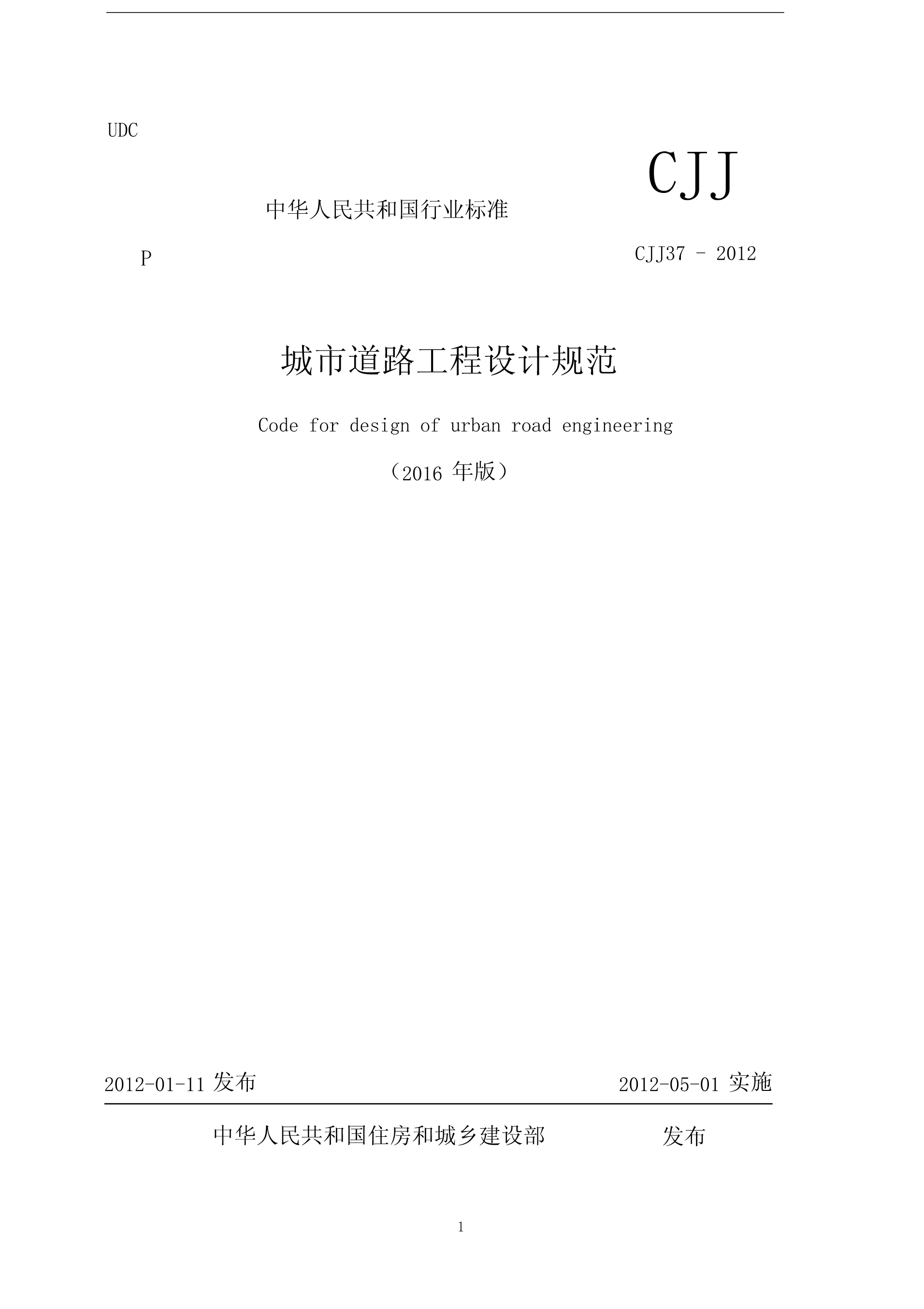 《城市道路工程设计规范》2016局部修订CJJ37-2012