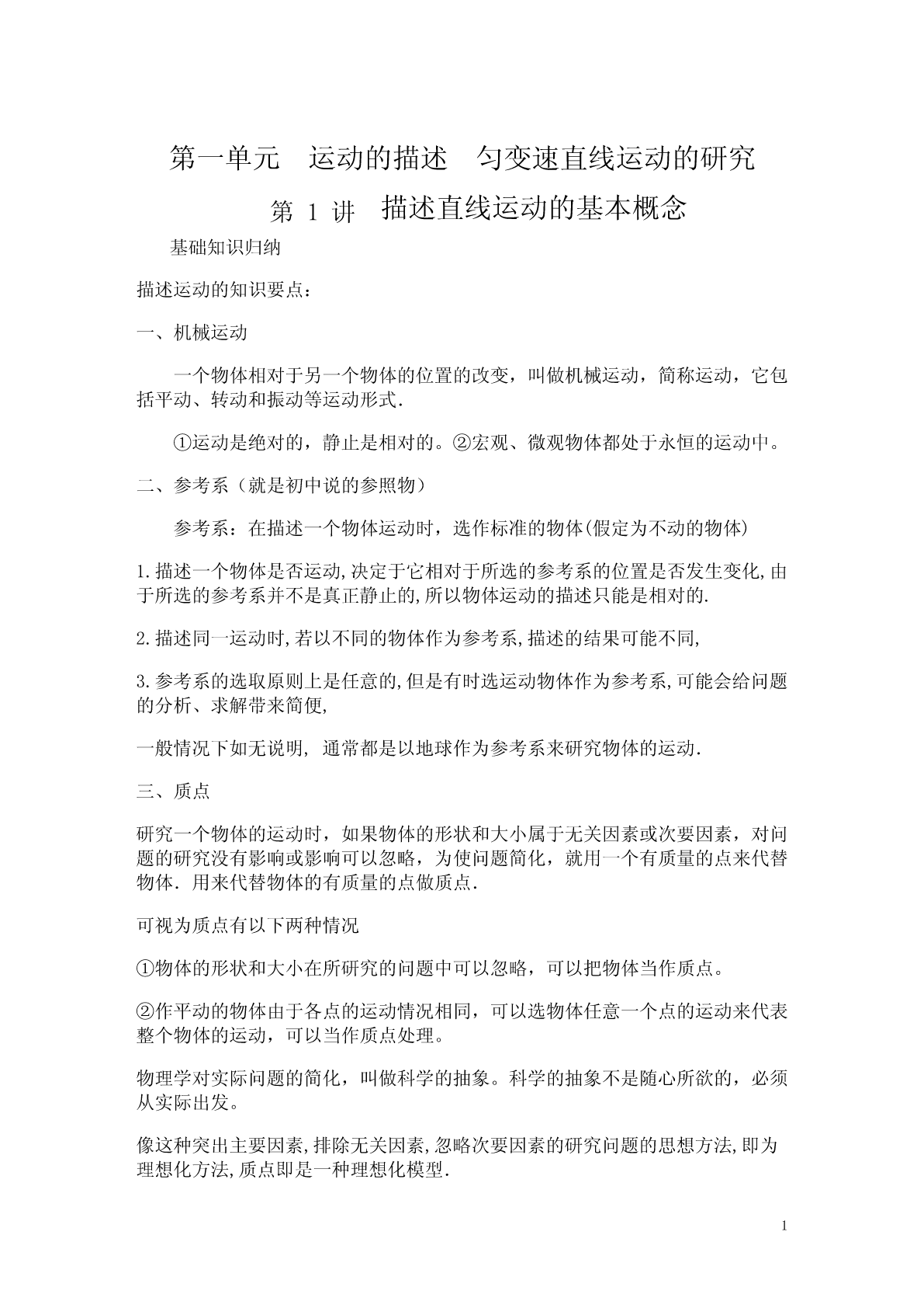 2015-2016学年高三复习第一单元运动的描述 匀变速直线运动基础知识讲解