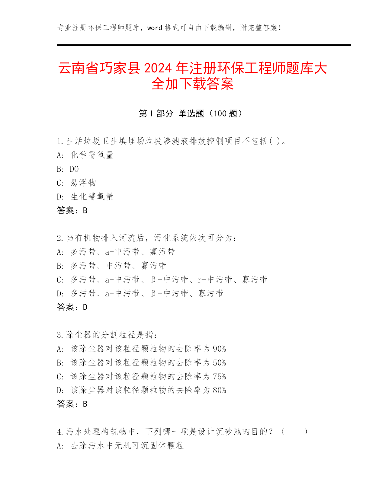 云南省巧家县2024年注册环保工程师题库大全加下载答案