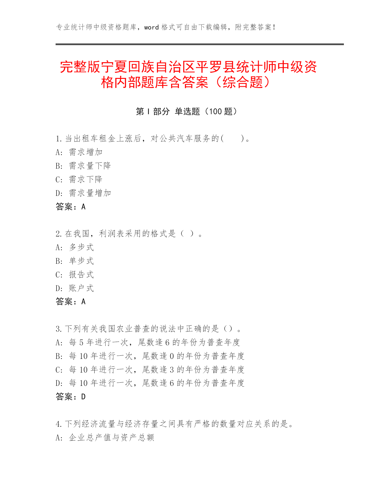 完整版宁夏回族自治区平罗县统计师中级资格内部题库含答案(综合题)