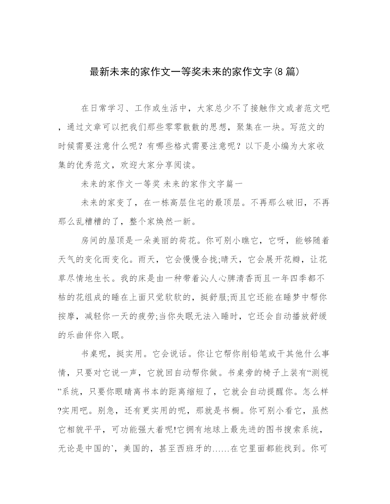 最新未来的家作文一等奖未来的家作文字(8篇)