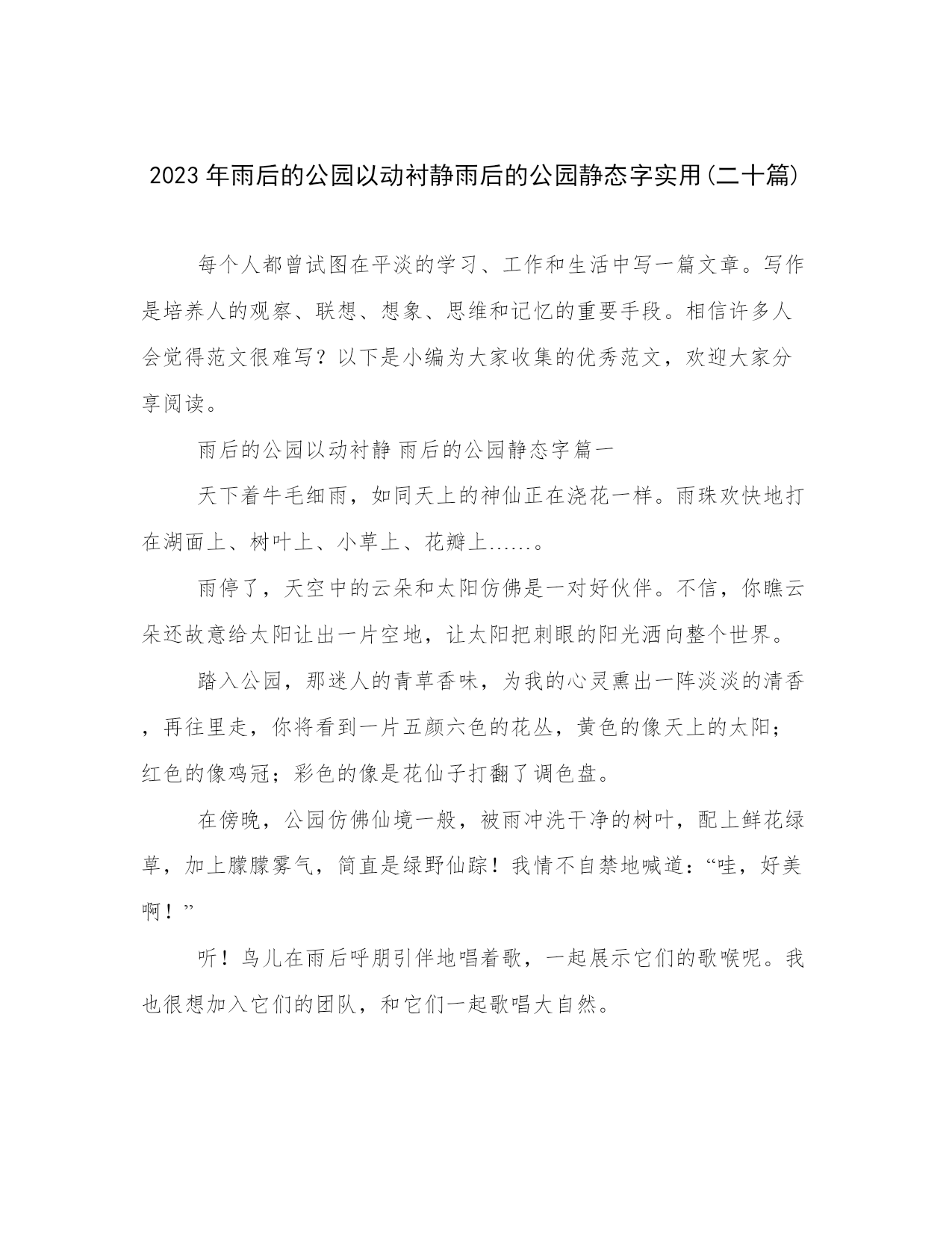 2023年雨后的公园以动衬静雨后的公园静态字实用(二十篇)