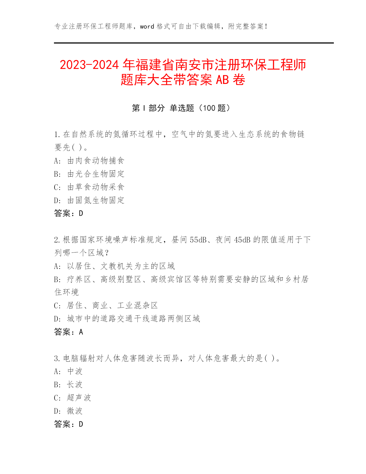 2023-2024年福建省南安市注册环保工程师题库大全带答案AB卷