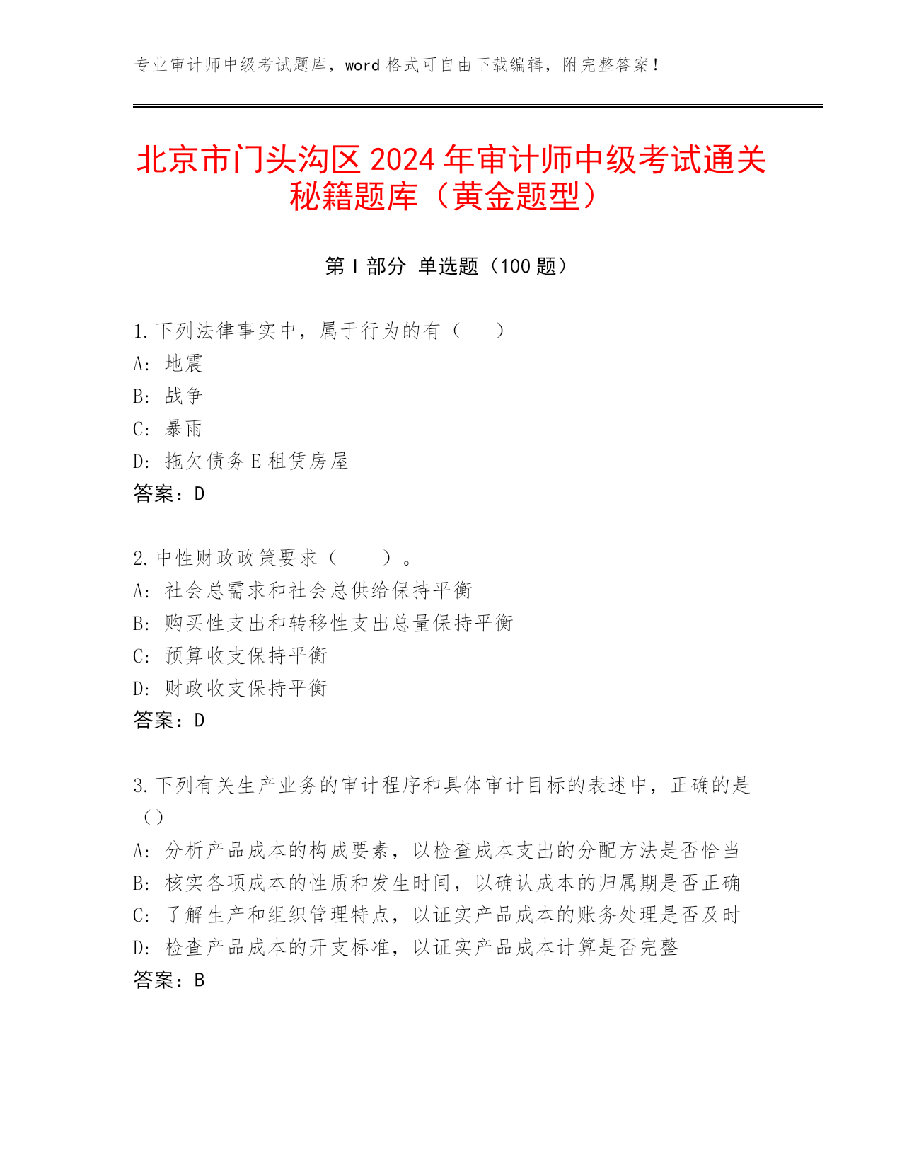 北京市门头沟区2024年审计师中级考试通关秘籍题库(黄金题型)