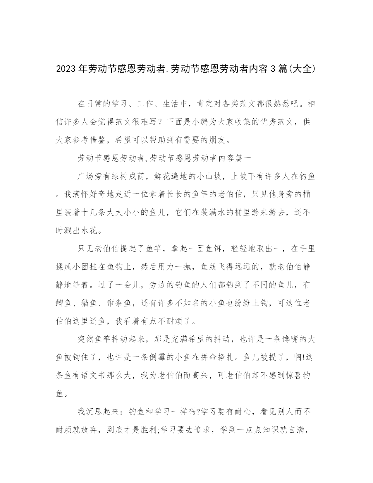 2023年劳动节感恩劳动者,劳动节感恩劳动者内容3篇(大全)