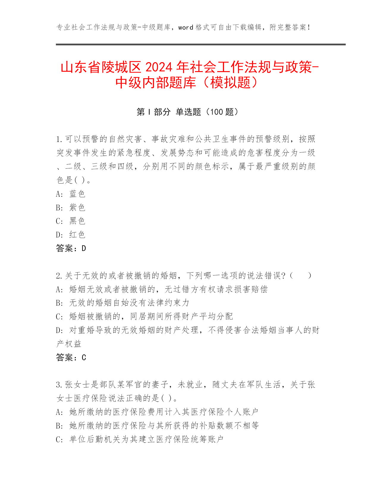山东省陵城区2024年社会工作法规与政策-中级内部题库(模拟题)