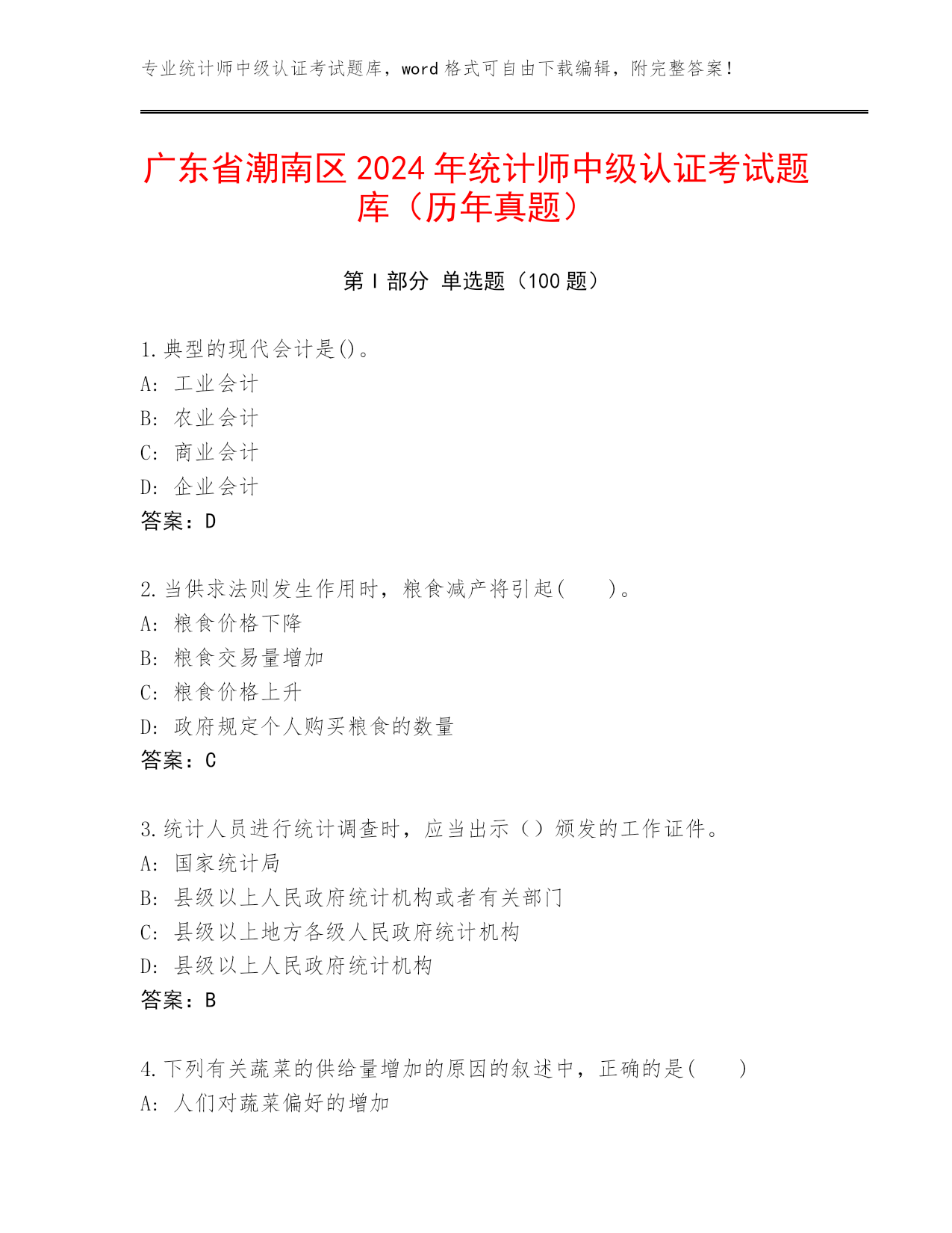 广东省潮南区2024年统计师中级认证考试题库(历年真题)