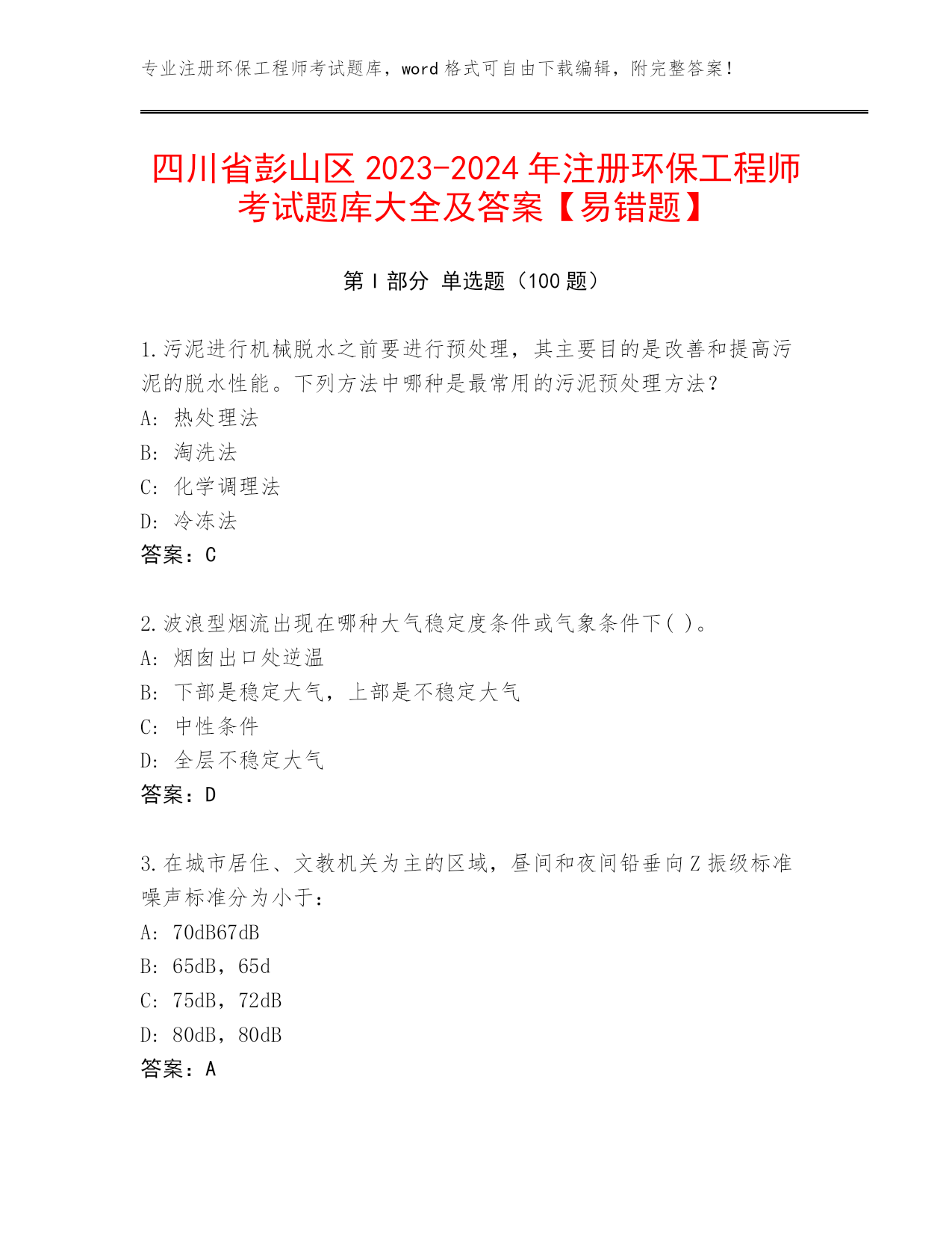 四川省彭山区2023-2024年注册环保工程师考试题库大全及答案【易错题】