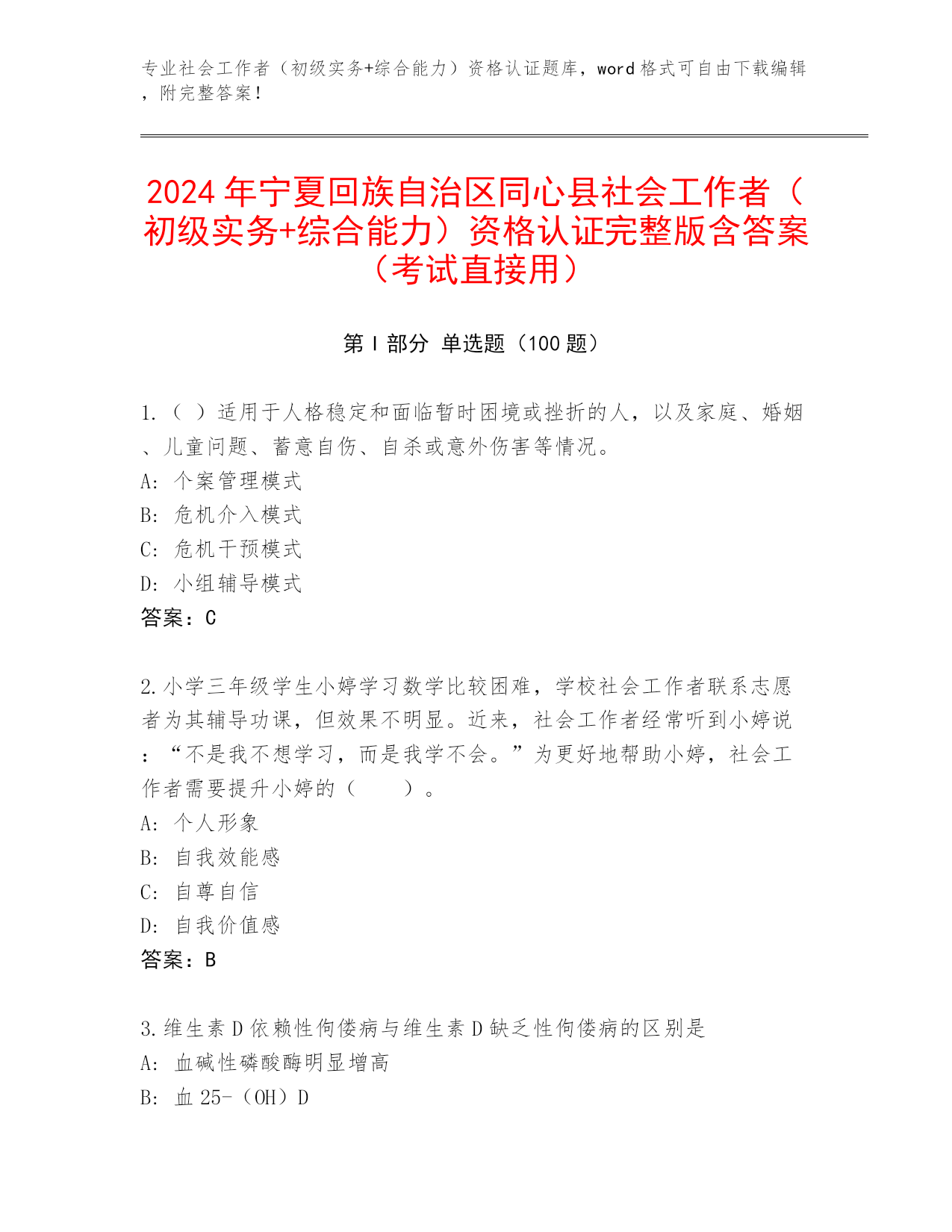 2024年宁夏回族自治区同心县社会工作者(初级实务+综合能力)资格认证完整版含答案(考试直接用)