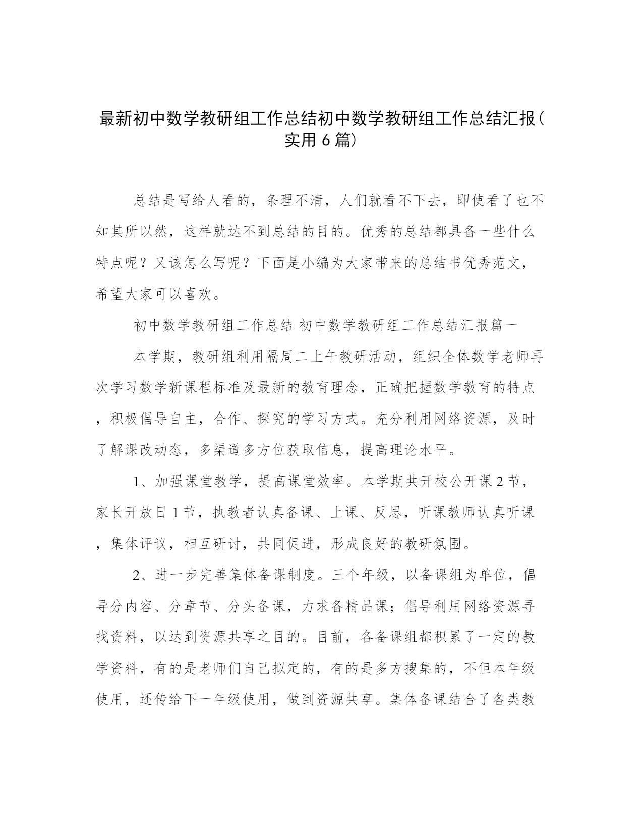 最新初中数学教研组工作总结初中数学教研组工作总结汇报(实用6篇)