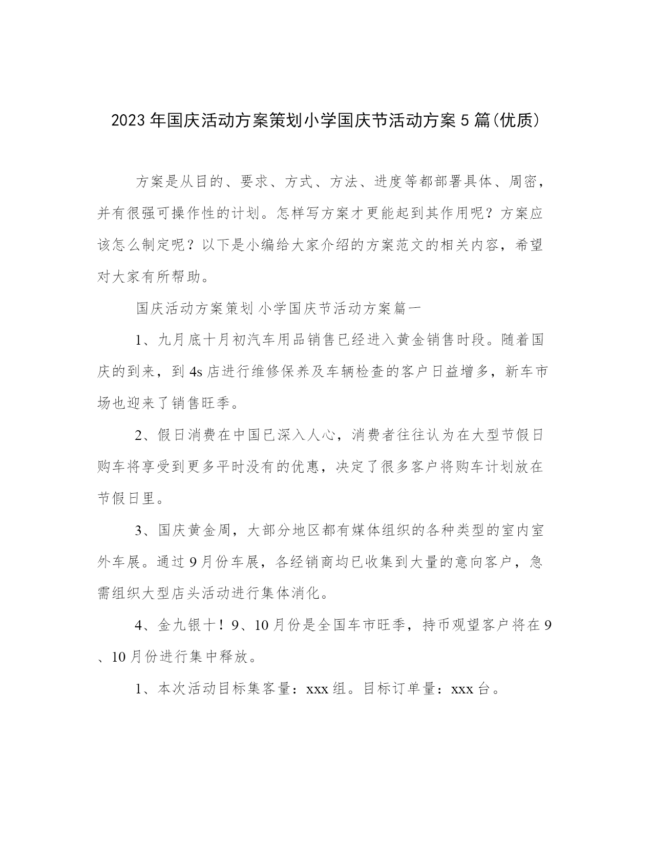 2023年国庆活动方案策划小学国庆节活动方案5篇(优质)