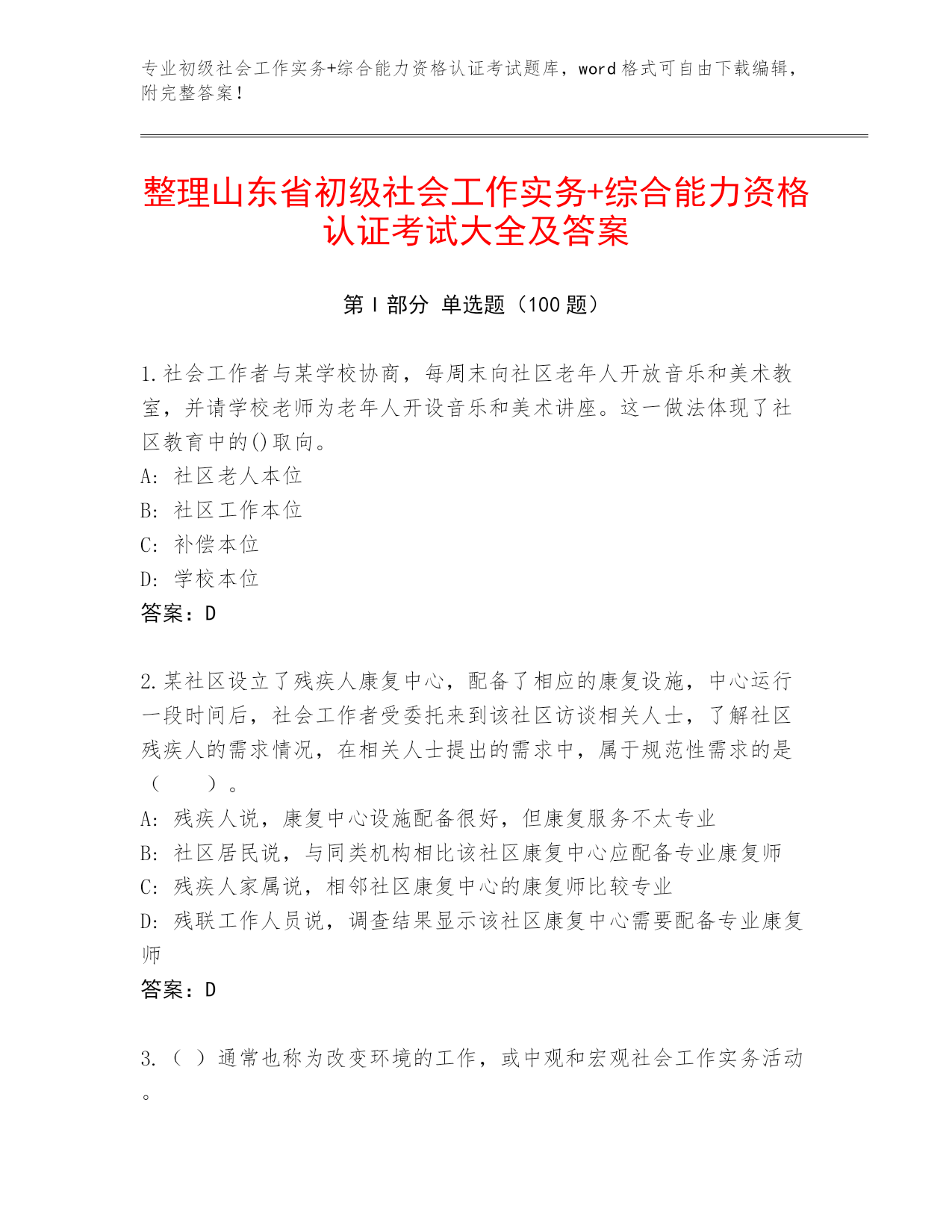 整理山东省初级社会工作实务+综合能力资格认证考试大全及答案