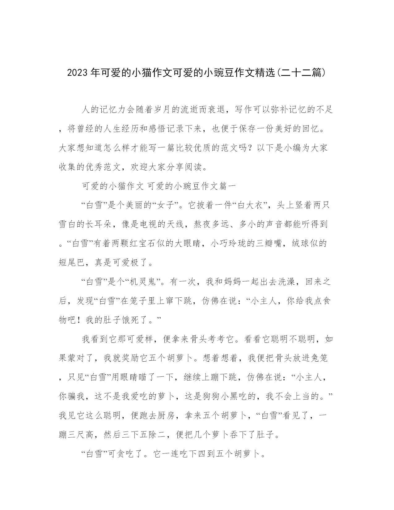 2023年可爱的小猫作文可爱的小豌豆作文精选(二十二篇)