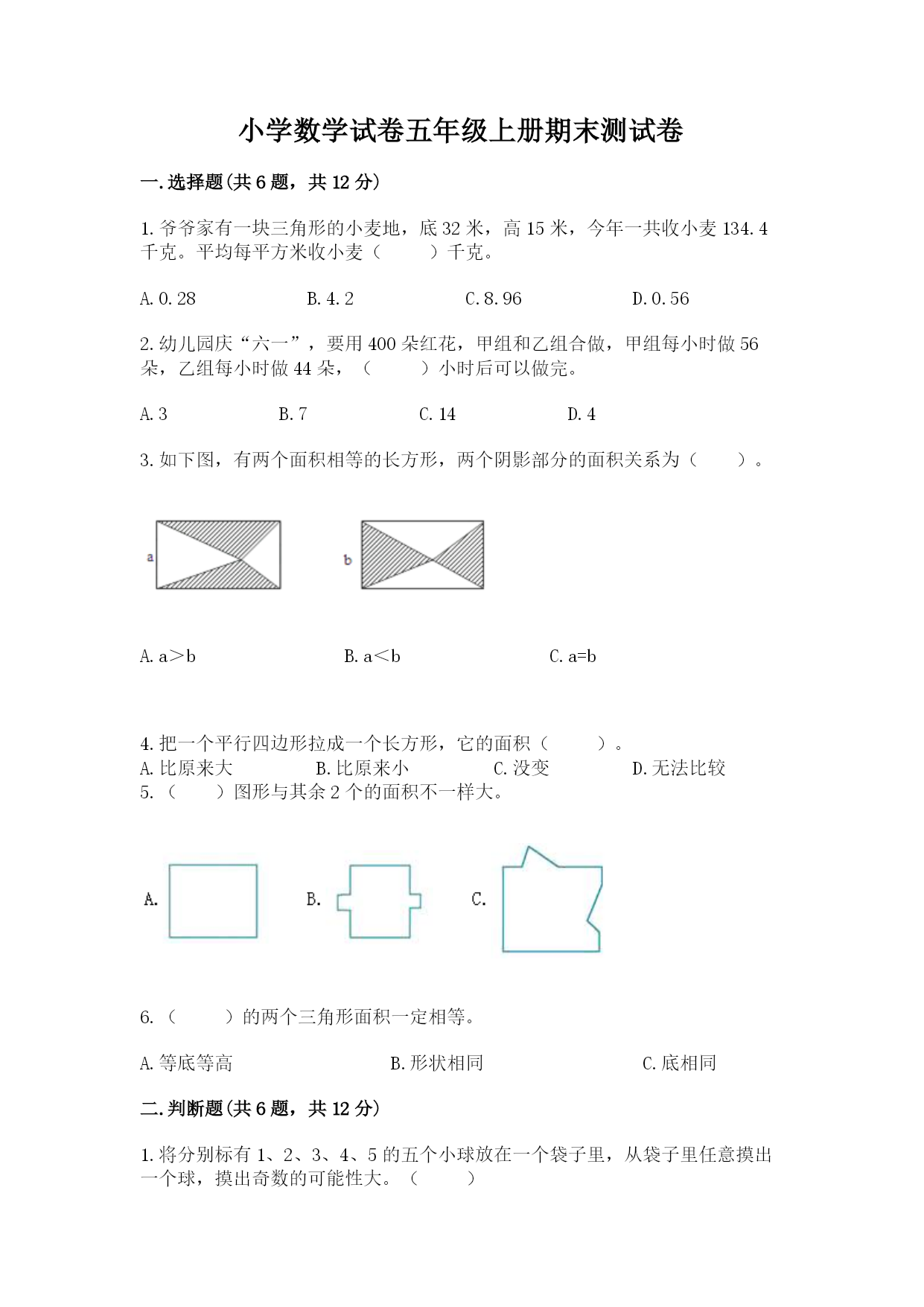 小学数学试卷五年级上册期末测试卷精品(典优)