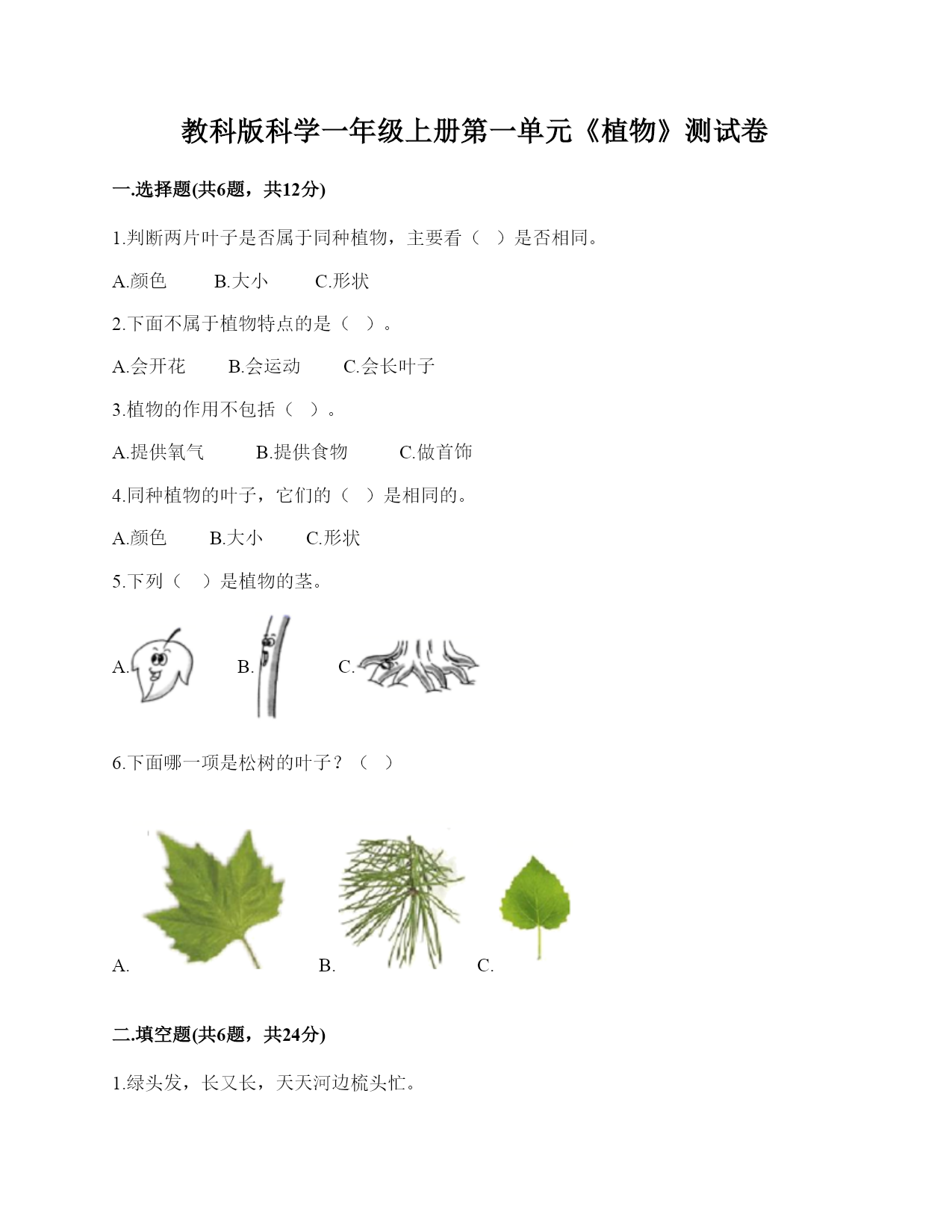 教科版科学一年级上册第一单元《植物》测试卷【综合卷】