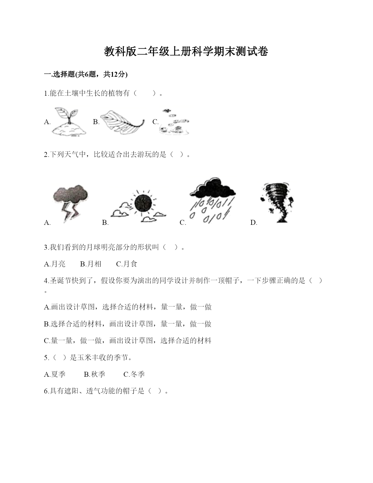 教科版二年级上册科学期末测试卷(完整版)