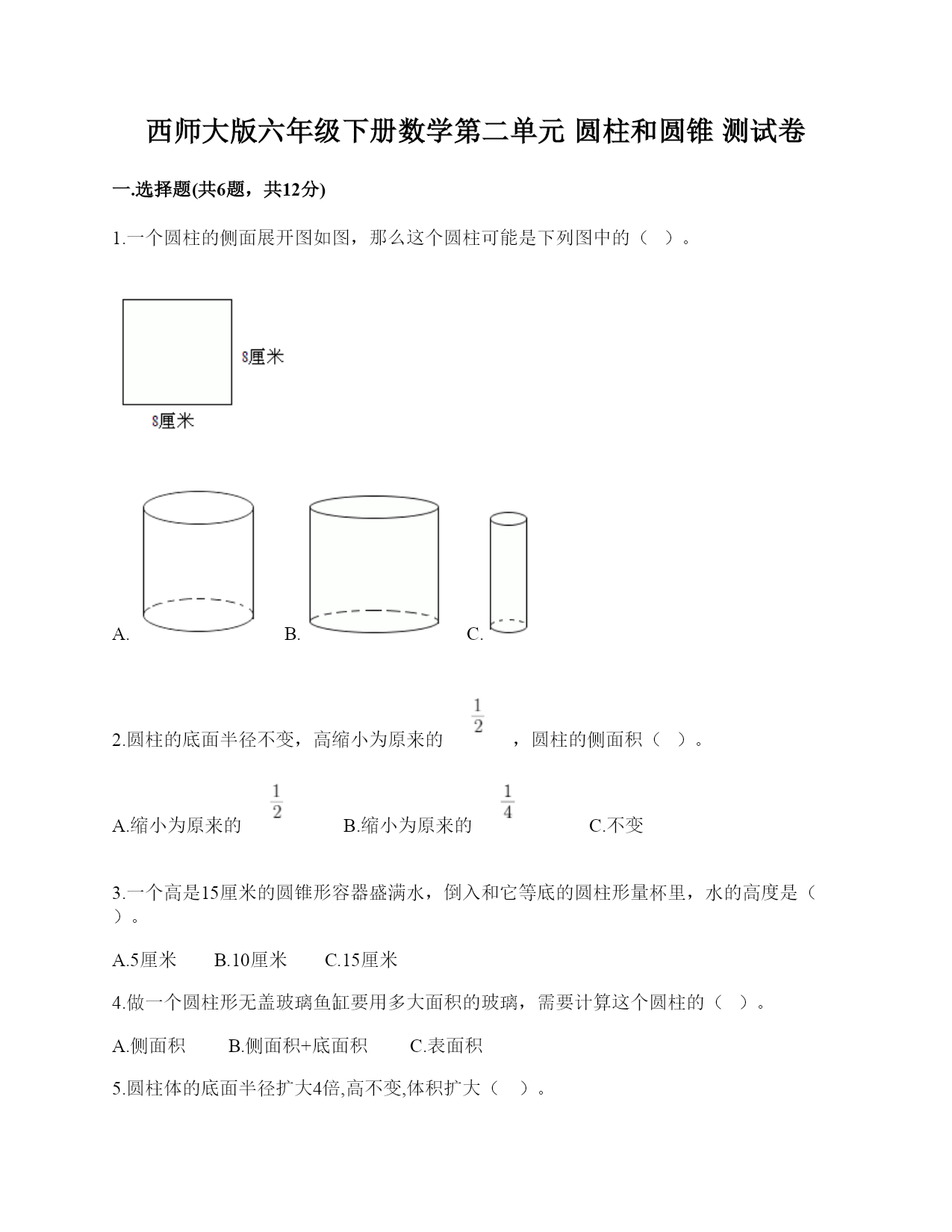 西师大版六年级下册数学第二单元 圆柱和圆锥 测试卷精品含答案