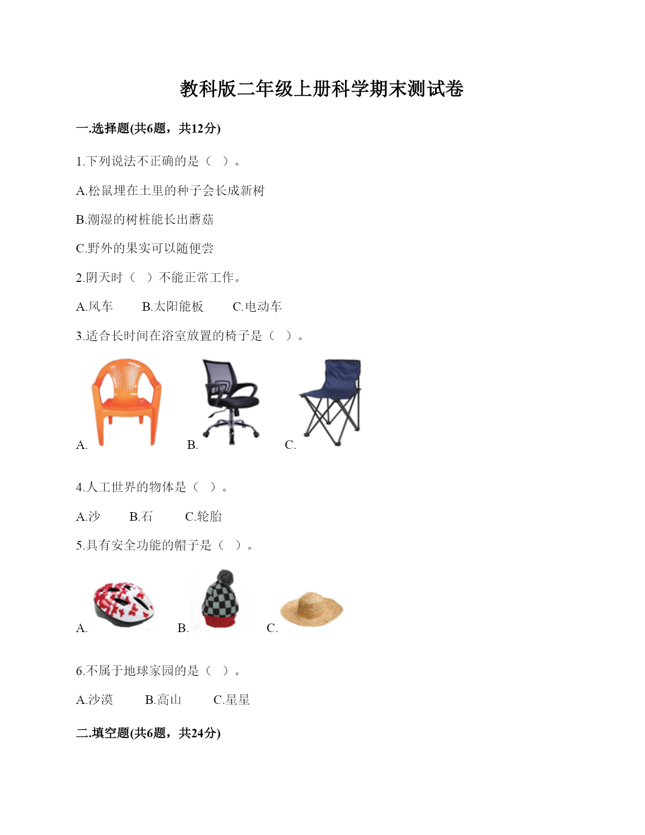 教科版二年级上册科学期末测试卷及参考答案(夺分金卷)