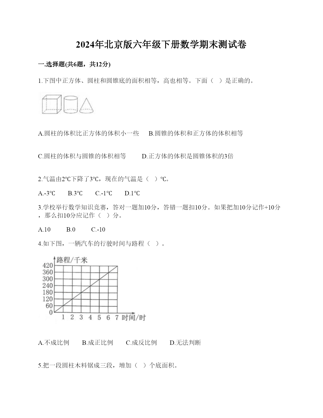 2024年北京版六年级下册数学期末测试卷附完整答案(全优)