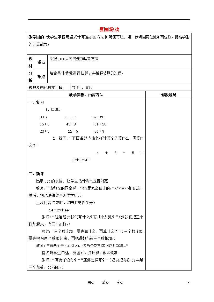 教案-全国-2012_一年级数学下册 套圈游戏 4教案 北师大版