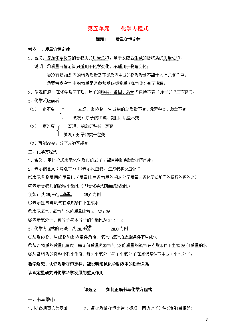 教案-全国-2014_九年级化学上册 第五单元《化学方程式》单元考点知识总结教案 新人教版