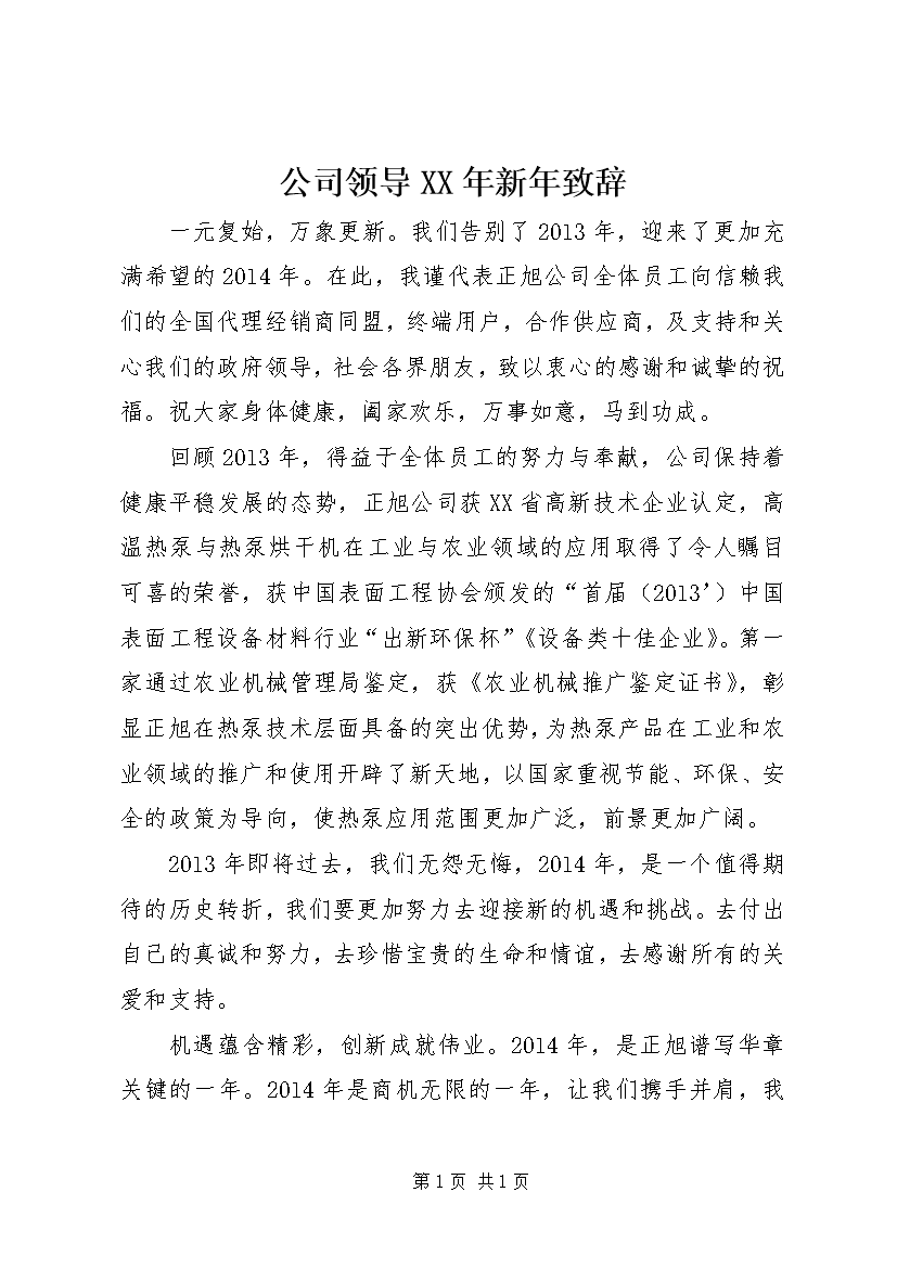 公司领导XX年新年致辞