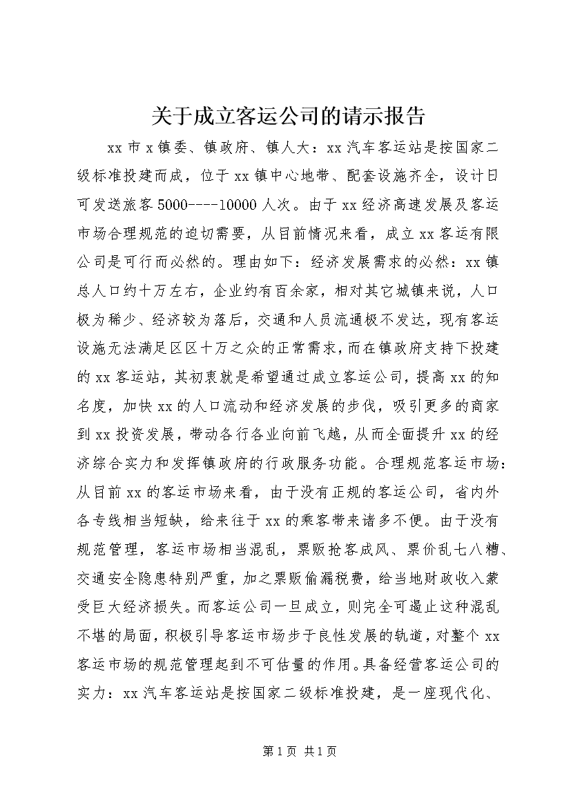 关于成立客运公司的请示报告 (2)