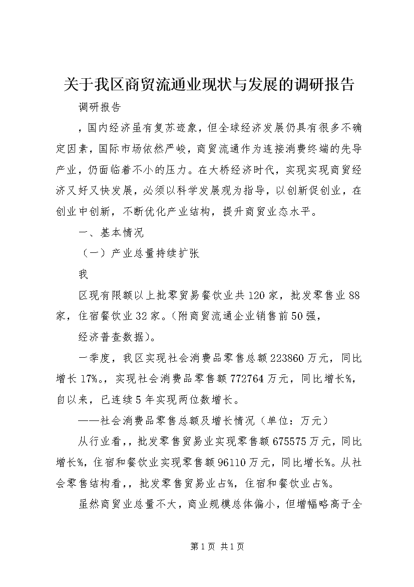 关于我区商贸流通业现状与发展的调研报告