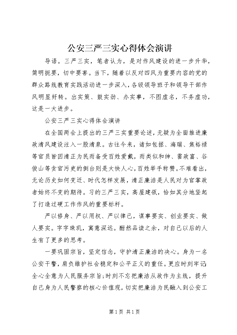 公安三严三实心得体会演讲