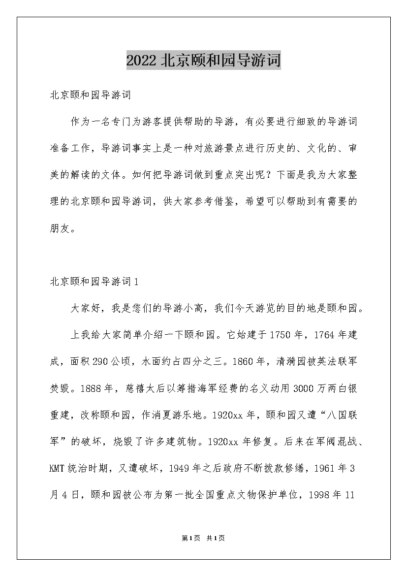 2022北京颐和园导游词
