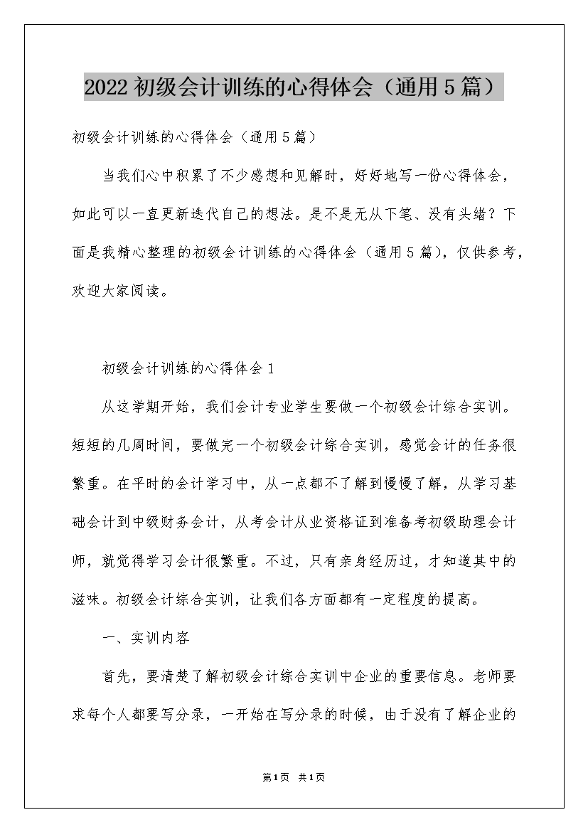 2022初级会计训练的心得体会(通用5篇)