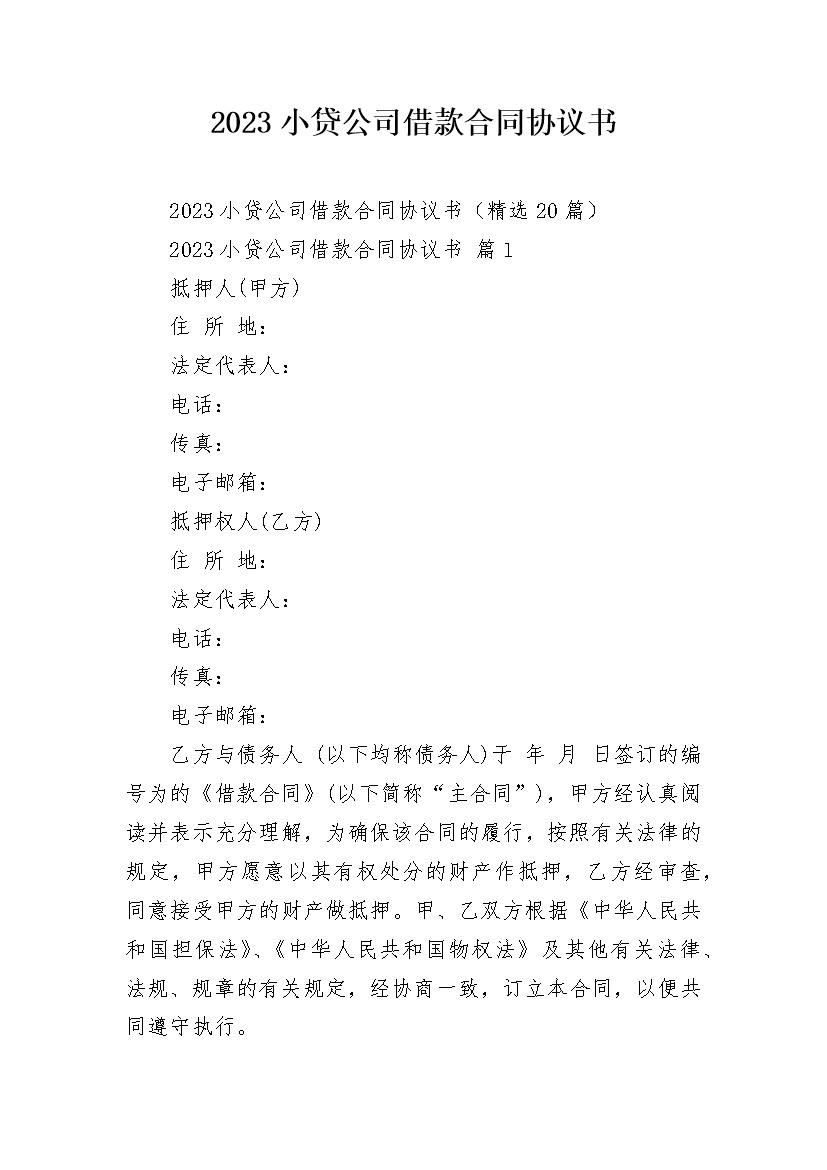 2023小贷公司借款合同协议书