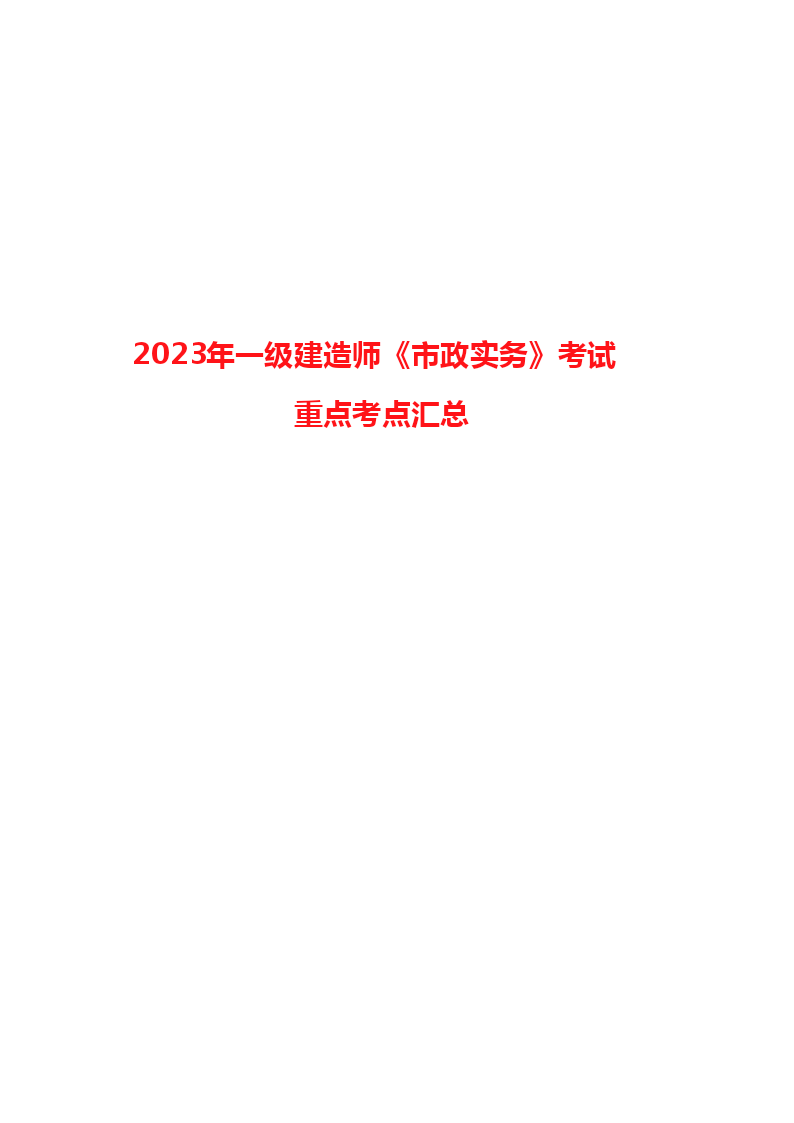 2023年一级建造师《市政实务》考试重点考点汇总整理