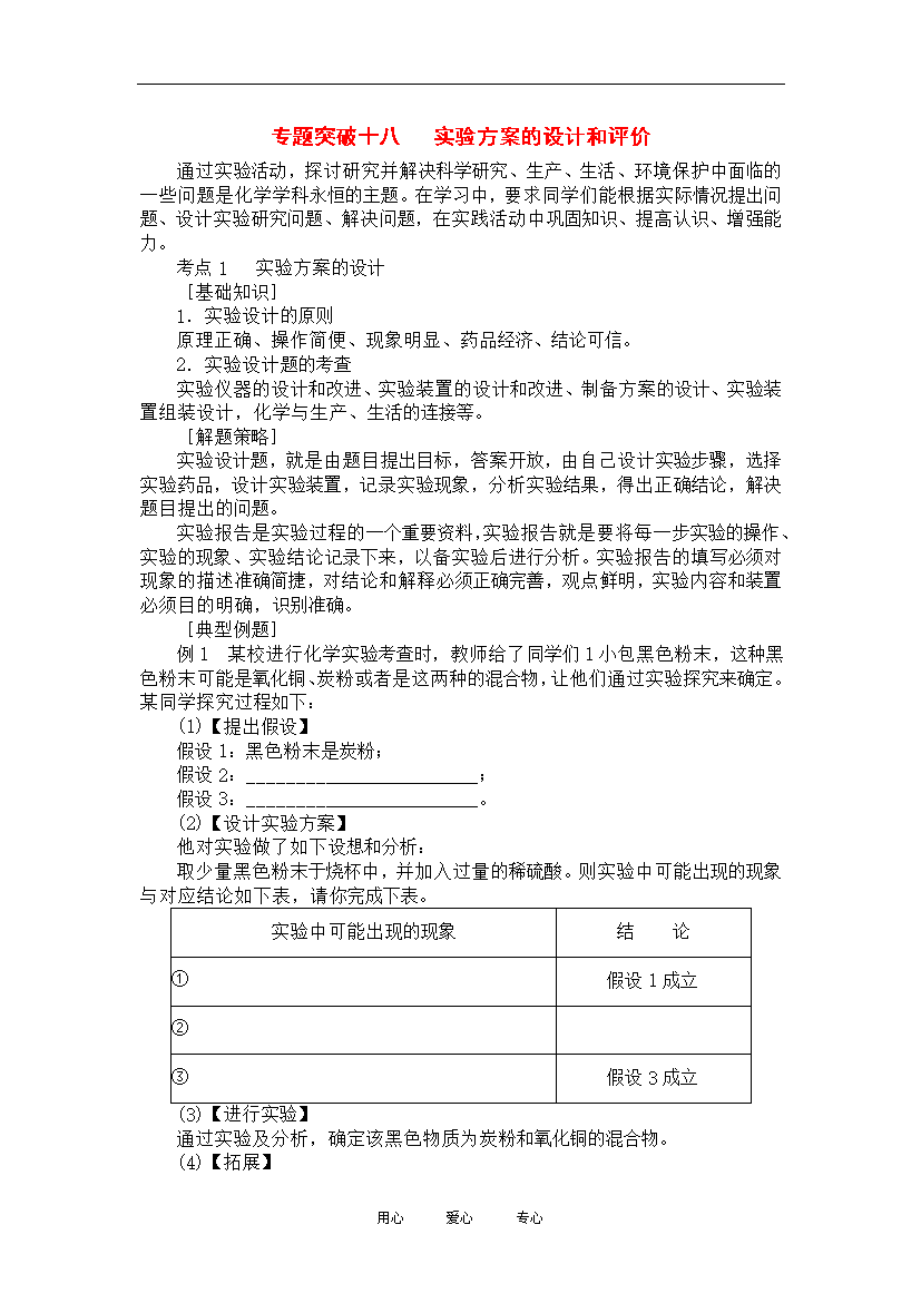 教案-全国-2010_九年级化学专题突破实验方案的设计和评价