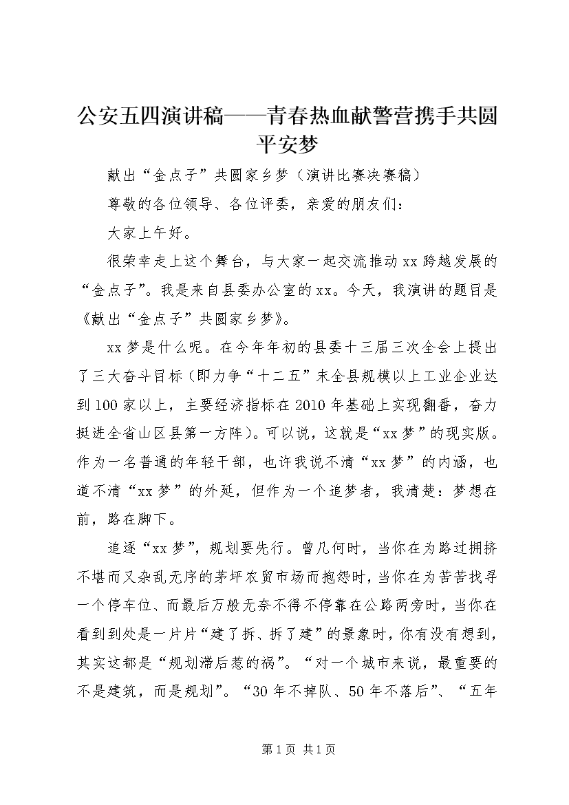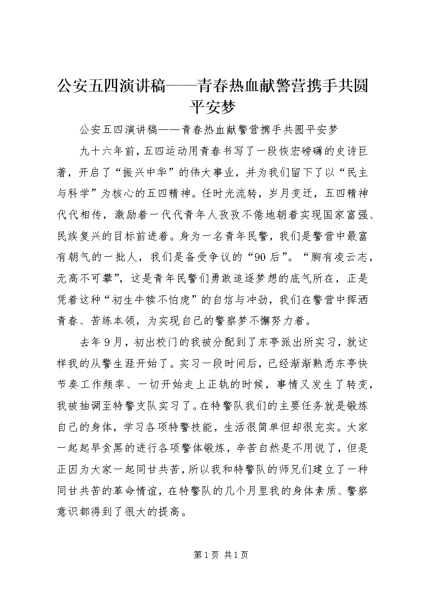 公安五四演讲稿——青春热血献警营携手共圆平安梦 (4)