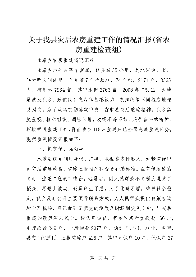 关于我县灾后农房重建工作的情况汇报(省农房重建检查组) (3)
