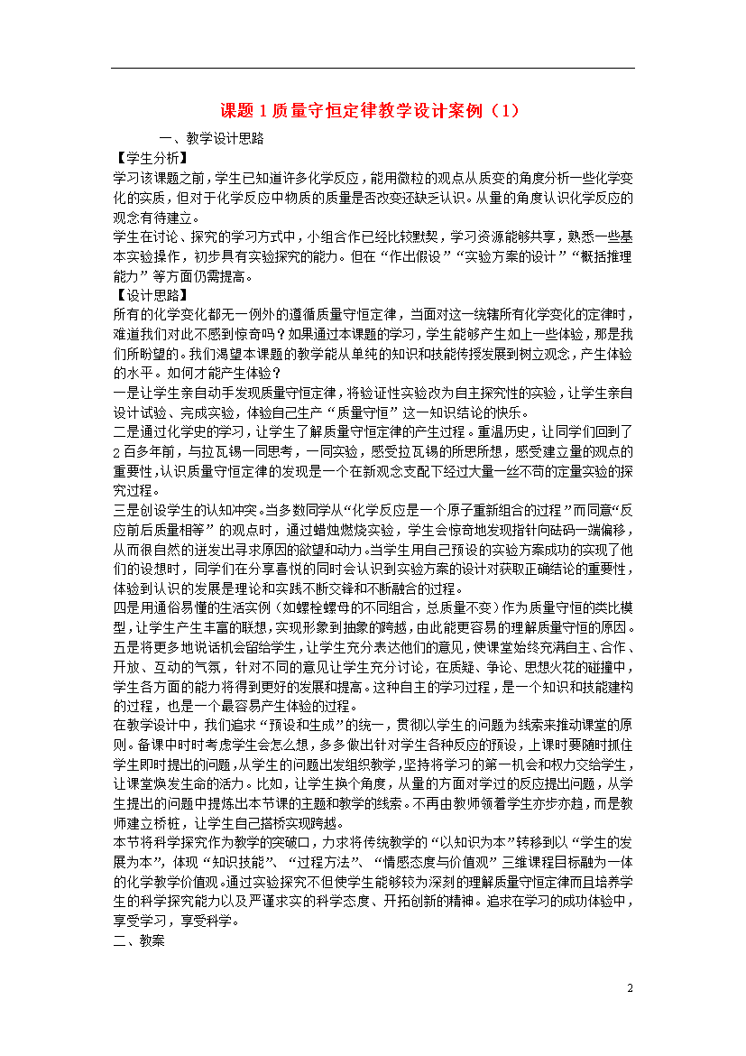 教案-全国-2013_九年级化学上册 课题1质量守恒定律教学设计案例(1) 新人教版