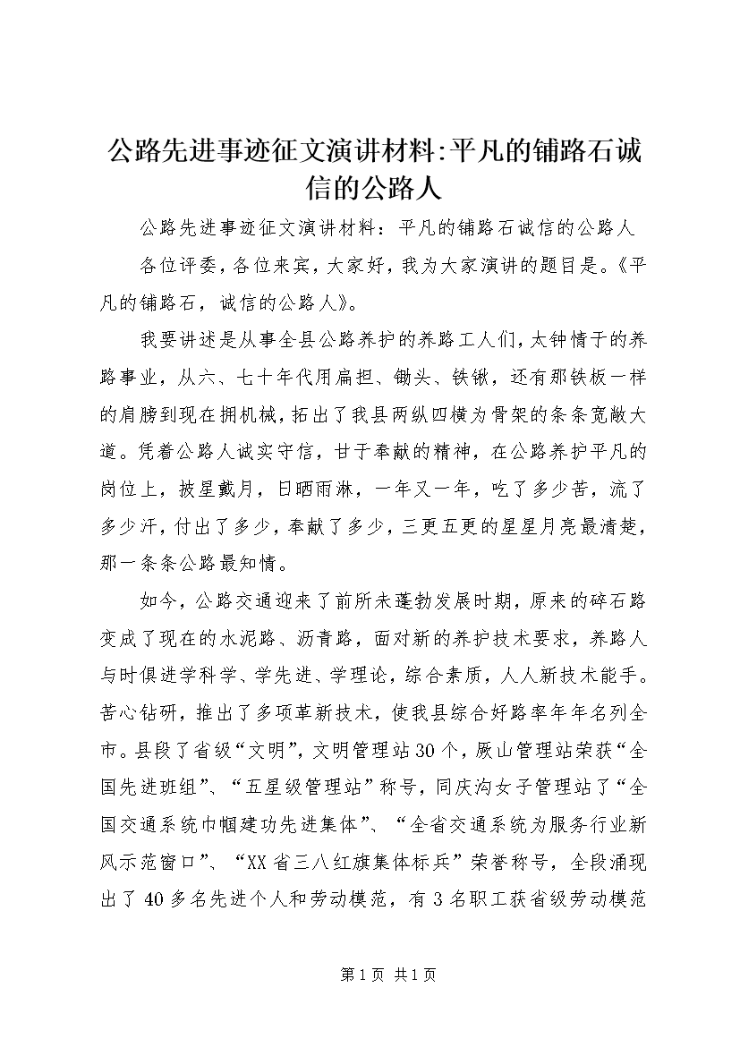 公路先进事迹征文演讲材料-平凡的铺路石诚信的公路人 (4)