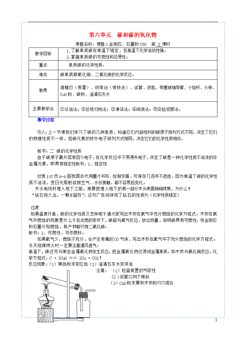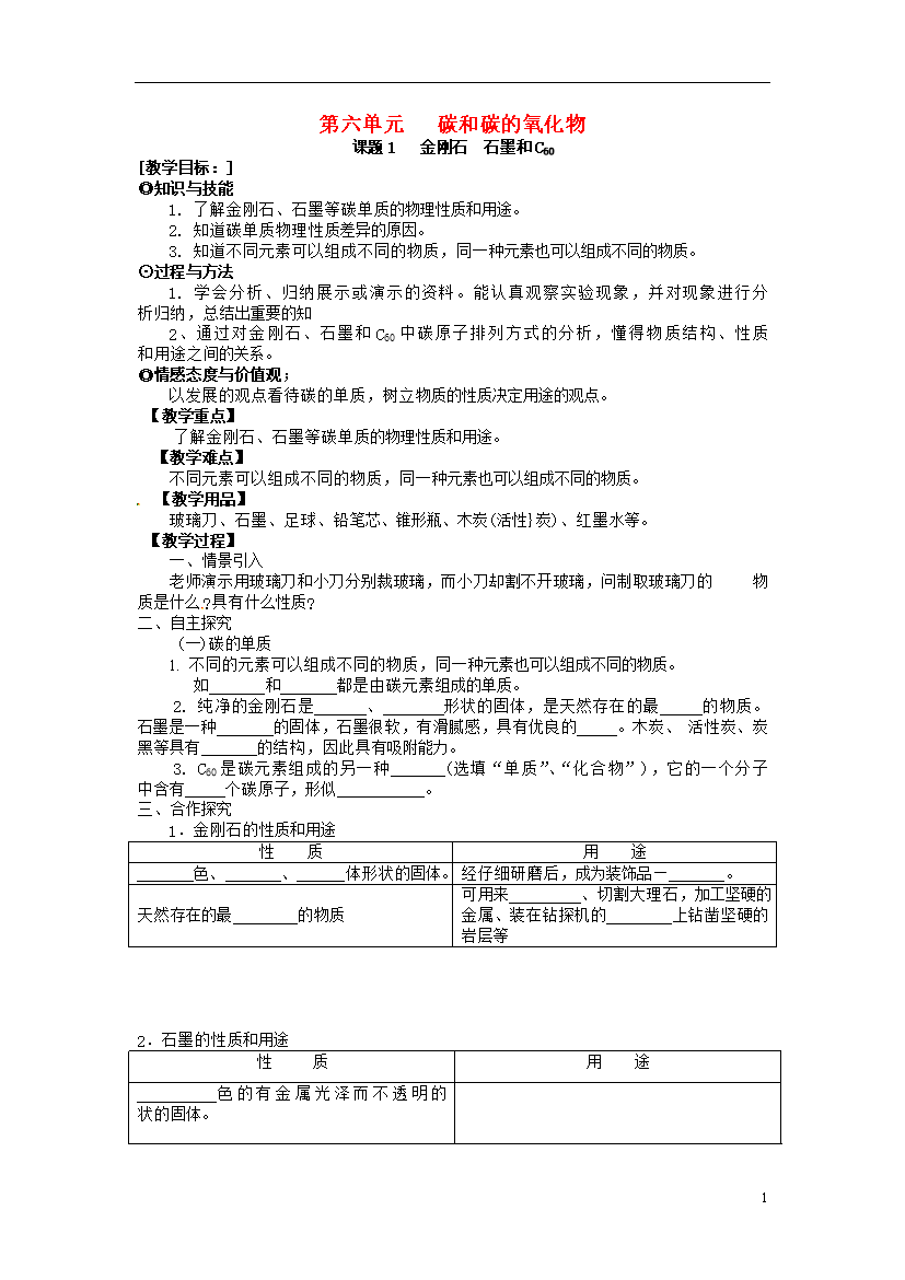 教案-全国-2018_九年级化学上册 第六单元 碳和碳的化合物 课题1 金刚石、石墨、C60(第2课时)教案 (新版)新人教版