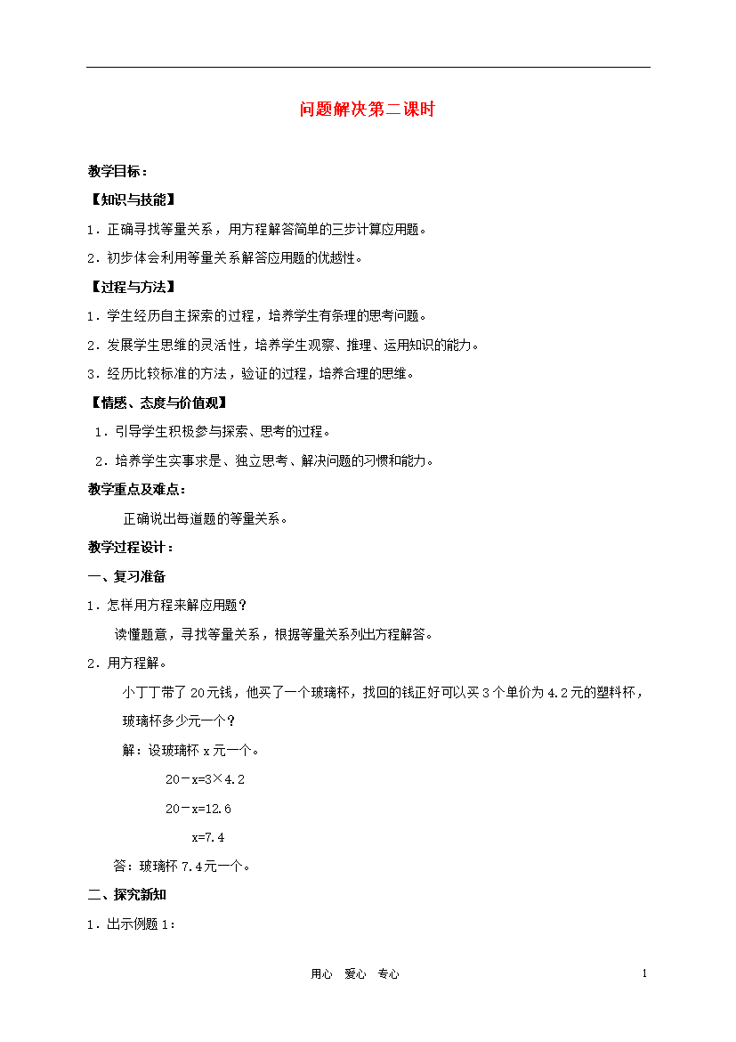 教案-全国-2011_五年级数学上册 问题解决第二课时教案 沪教版