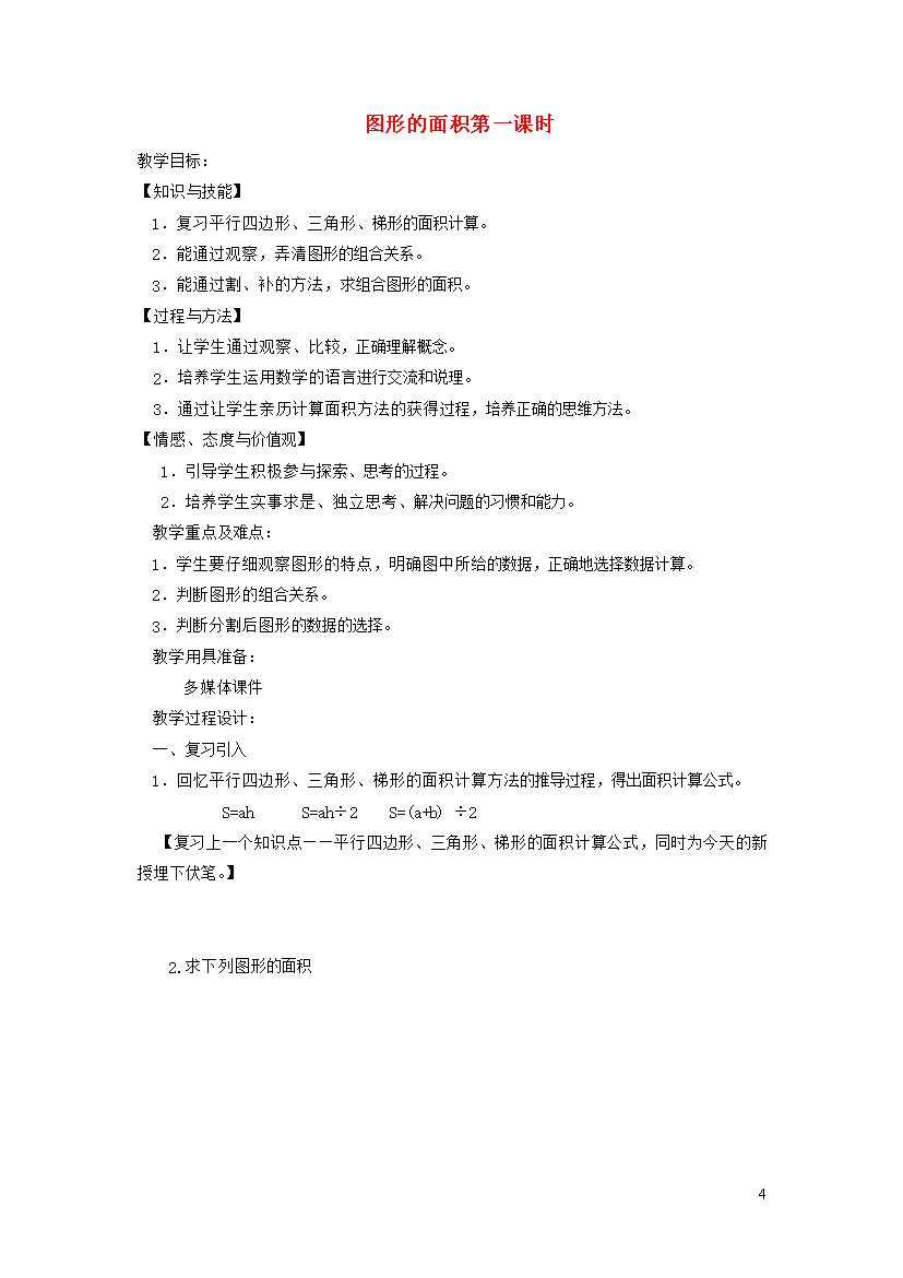 教案-全国-2019_五年级数学上册 第六单元《图形的面积第一课时》教案 沪教版