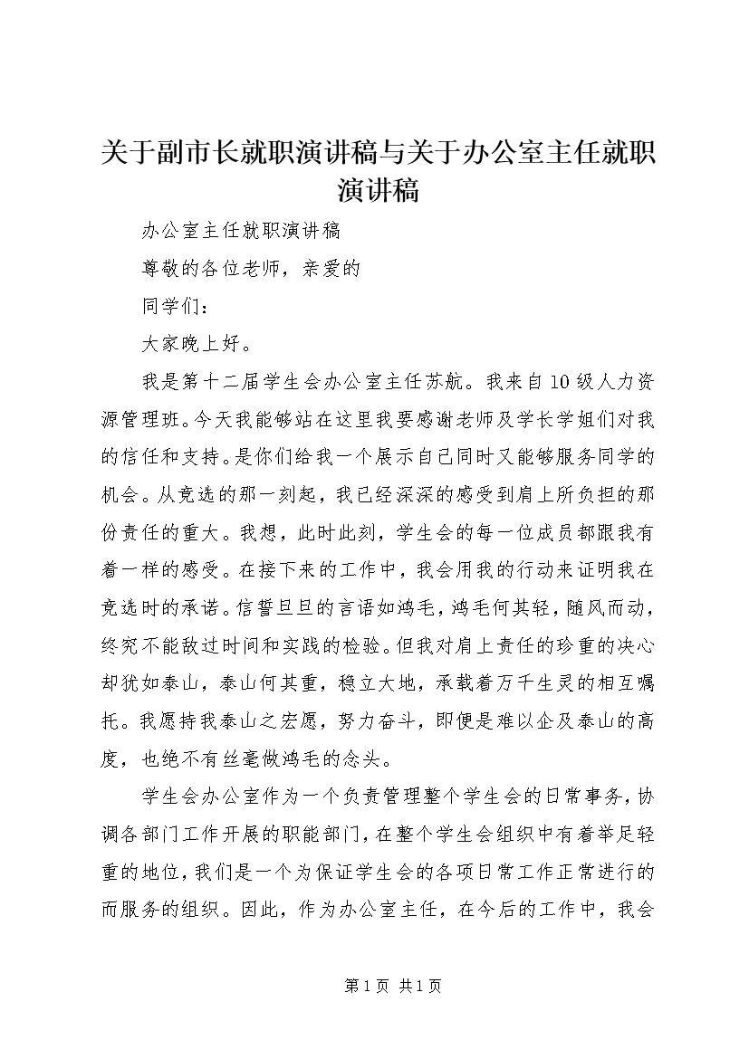 关于副市长就职演讲稿与关于办公室主任就职演讲稿 (4)